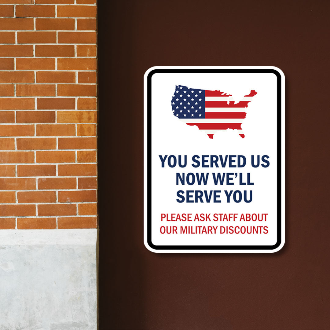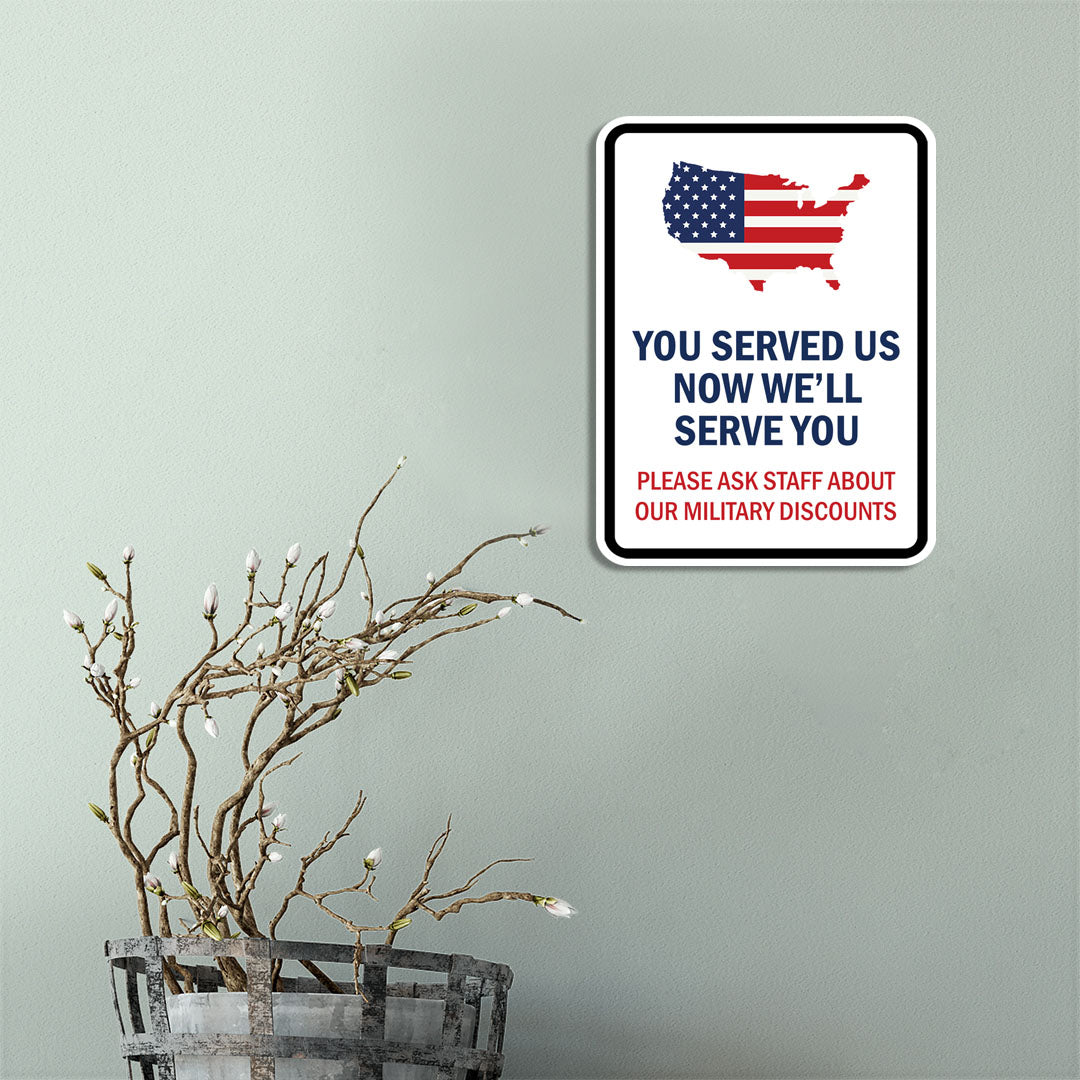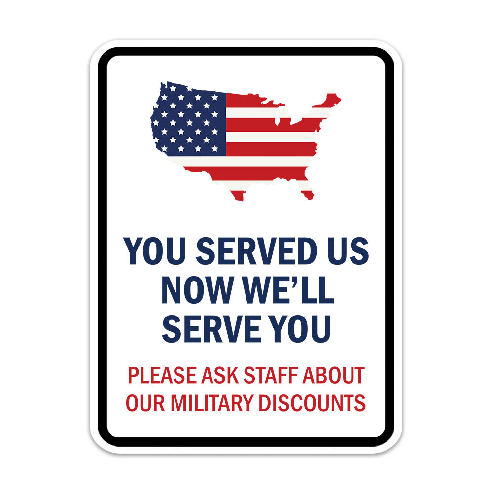 Portrait Round Plus You Served Us Now We'll Serve You Please Ask Staff About Our Military Discounts Door or Wall Sign Honor Veterans with Military Signs