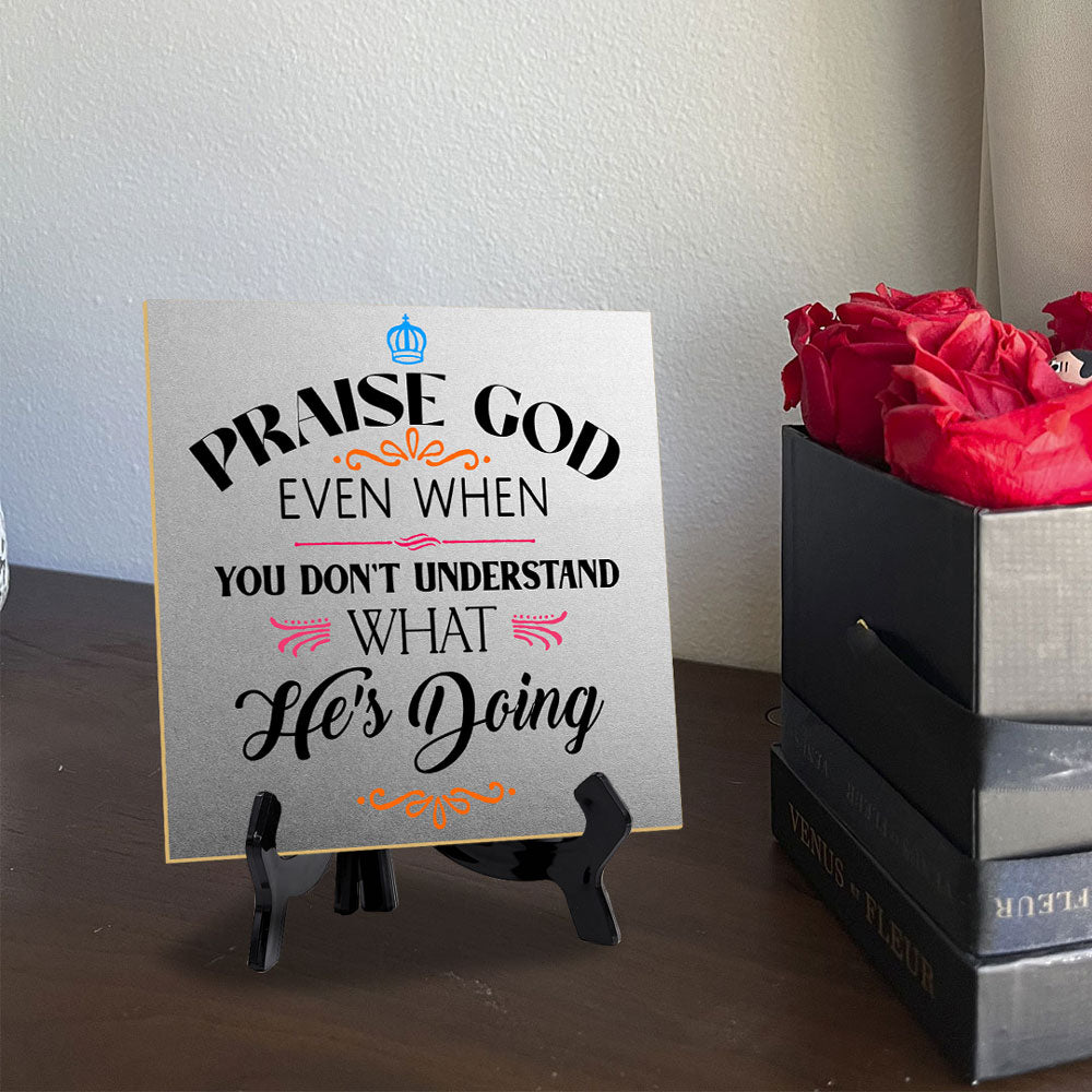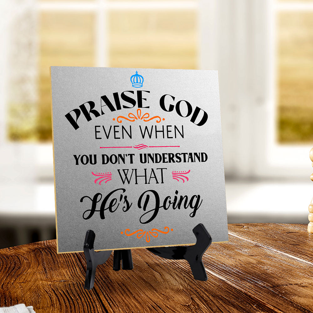 Praise God Even When You Don't Understand What He's Doing2 5"x 5" Square Table Sign With Acrylic Easel