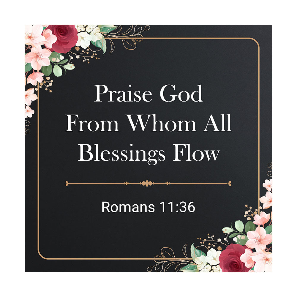 Praise God From Whom All Blessings Flow Romans 11:36 5"x 5" Square Table Sign With Acrylic Easel