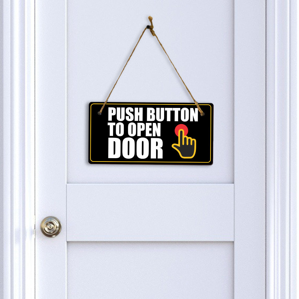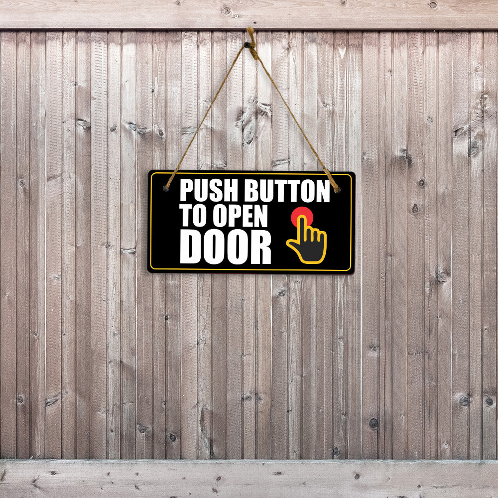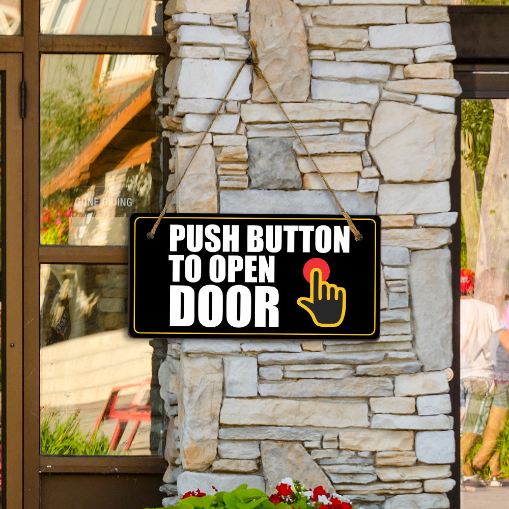 Introducing our versatile and stylish Push Button To Open Door, the perfect blend of style and sophistication to elevate your home or workplace. Our 5x10 Hanging Sign range is the perfect choice for your home, workplace or business. Each sign is attached with rustic twine, providing a charming and versatile accent for any space. Our curated designs effortlessly complement a variety of styles, from rustic farmhouse or Modern Chic, to simple and functional options. Choose from our diverse range of designs to personalize your space. Whether it's a warm welcome at the entrance, a motivational quote for your workspace, or a playful touch for the kids' room, our Hanging Wall or Door Signs are the perfect way to express your unique style.