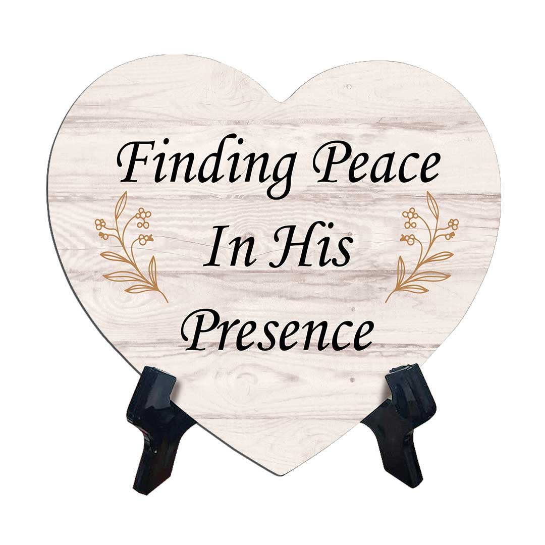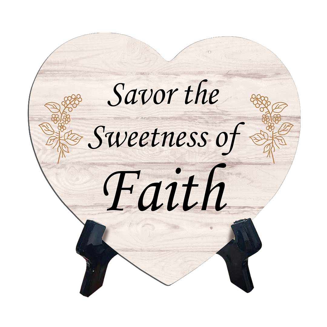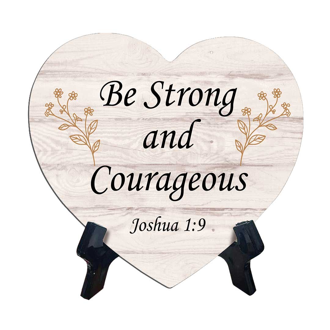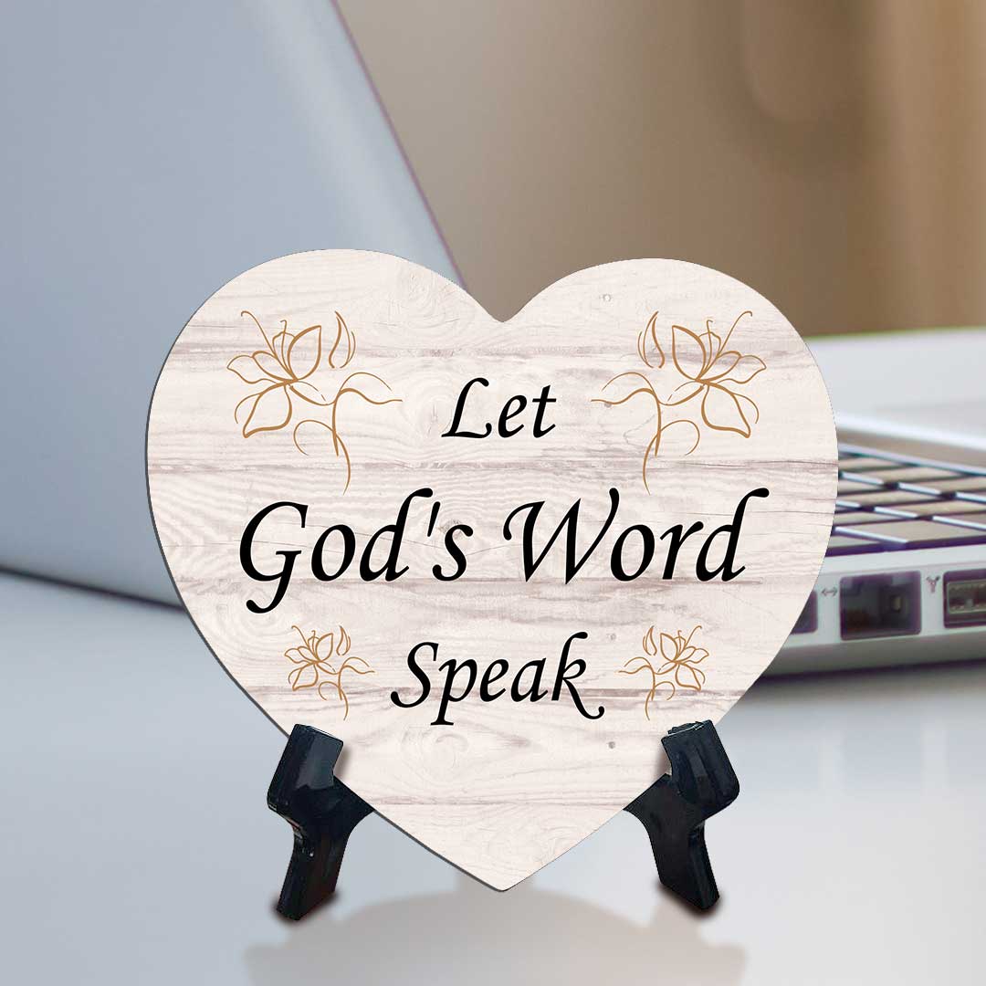 Reflective Religious Quote Signs, Heart Table Sign. Add warmth and inspiration to any space with this elegant Heart Table Sign. Designed with a reflective finish and uplifting religious quote, this 6x5" sign brings a meaningful touch to desks, shelves, or bedside tables. The unique heart shape and high-quality printing give it a polished, eye-catching look. It comes with a acrylic stand that holds the sign securely-no need for tools or mounting hardware. Whether you're decorating your home, office, or giving it as a thoughtful gift, this tabletop sign is a beautiful reminder of faith and encouragement.