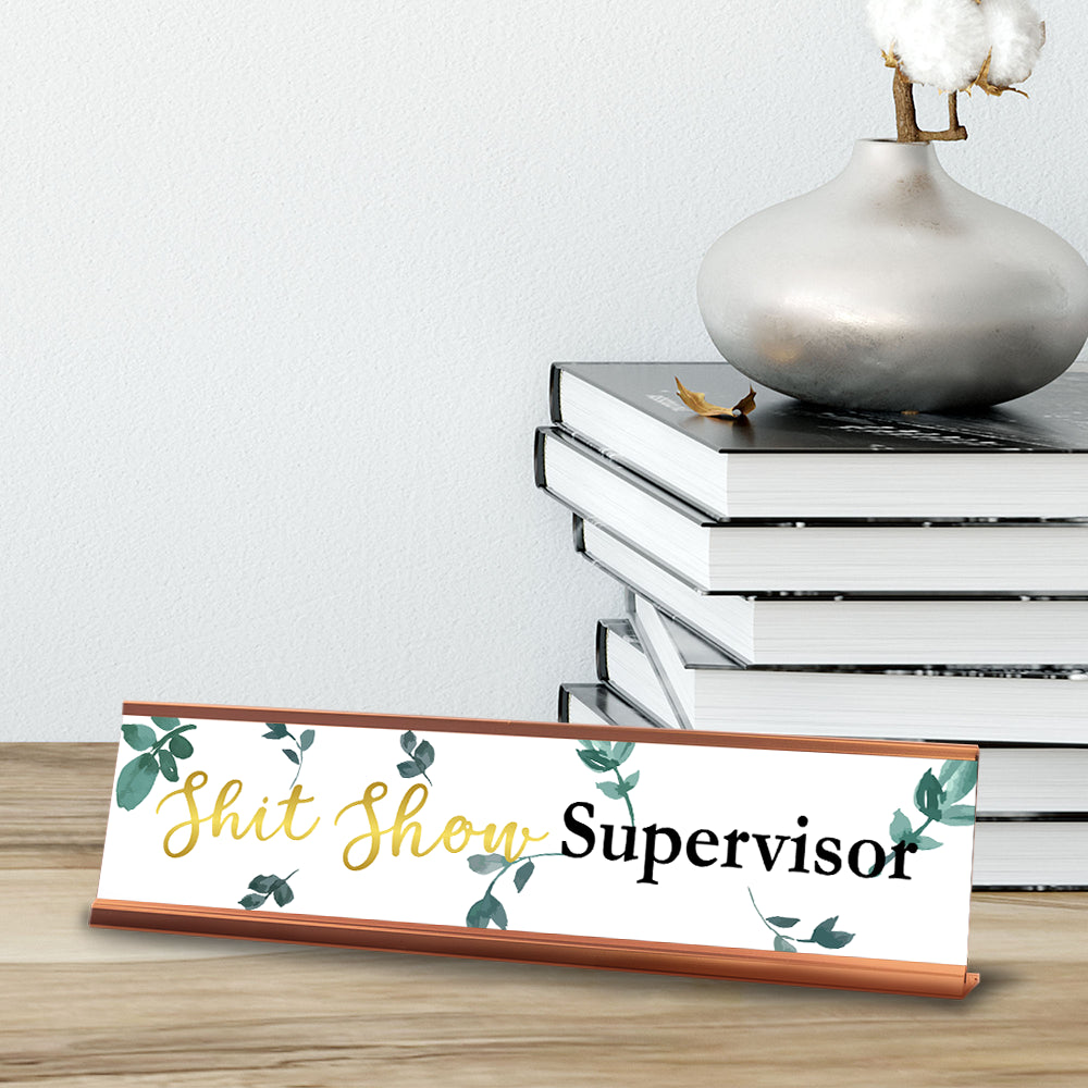 Signs ByLITA Novelty Desk Sign Nameplate "Shit Show Supervisor". Fun novelty desk sign gift idea for friends, family colleagues, bosses, managers and more. The premium sublimated plastic nameplate comes with a sturdy colored aluminium frame. Great for home or office sarcastic funny desk sign.