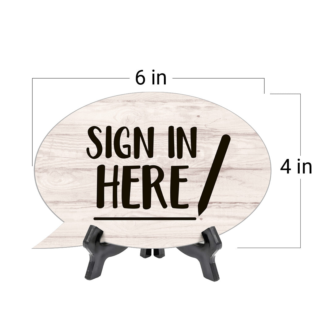 Sign in Here Oval Speech Bubble (6 x 4") Table Sign With Acrylic Easel