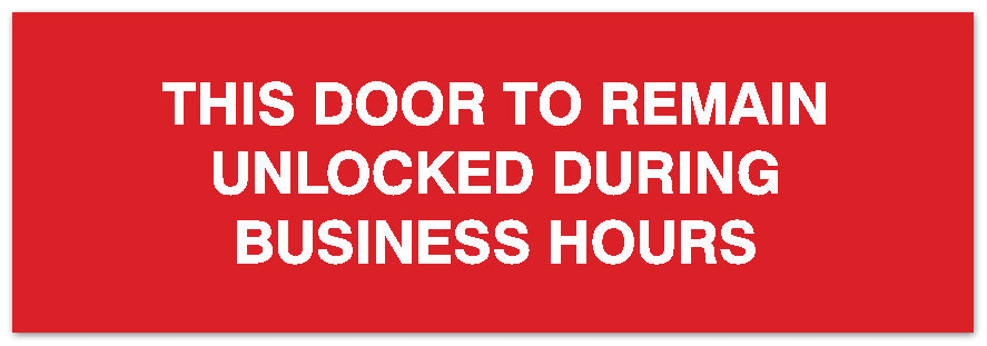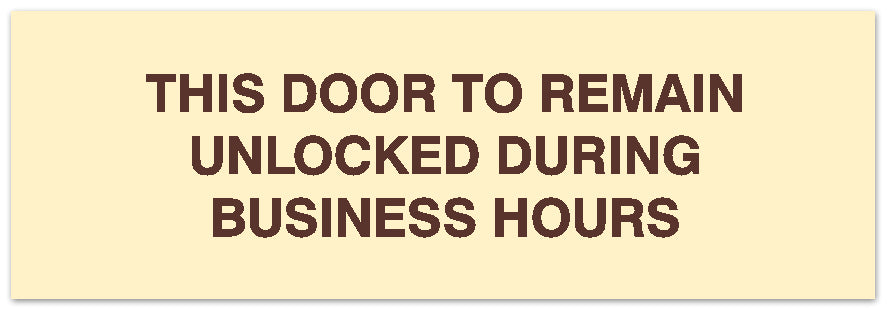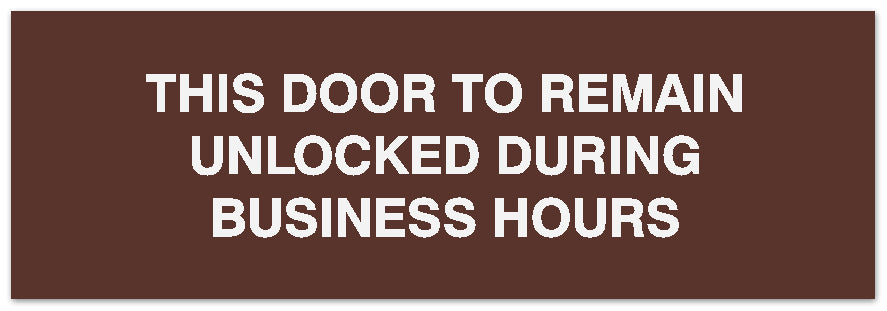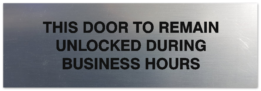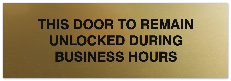 Signs ByLITA Basic This door to remain unlocked during business hours Sign - Laser-Engraved Lettering