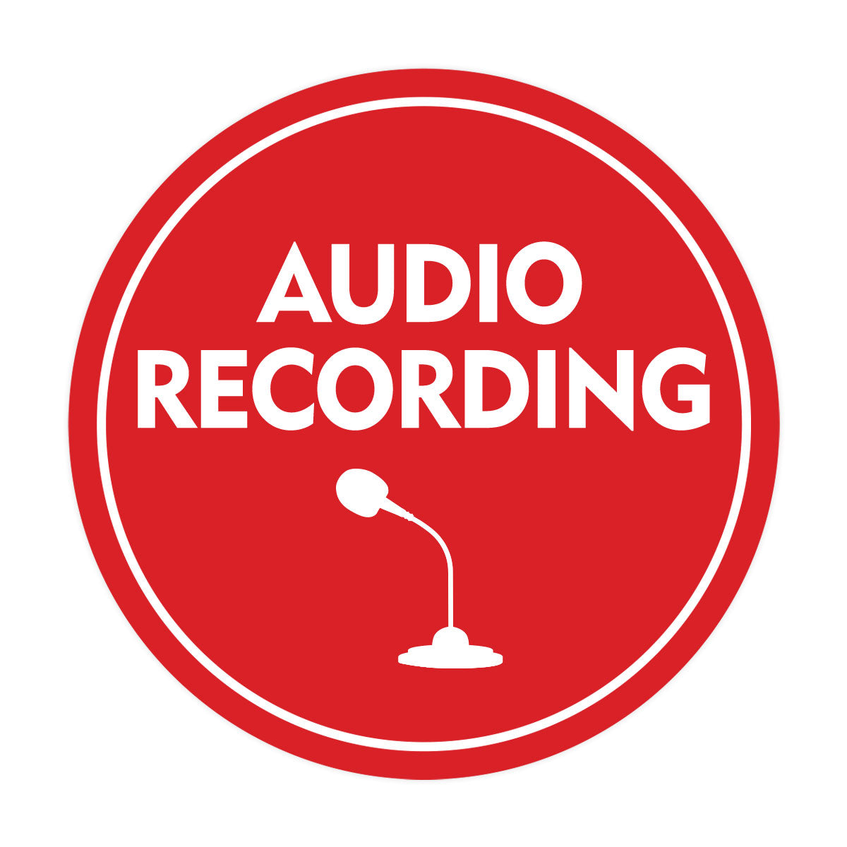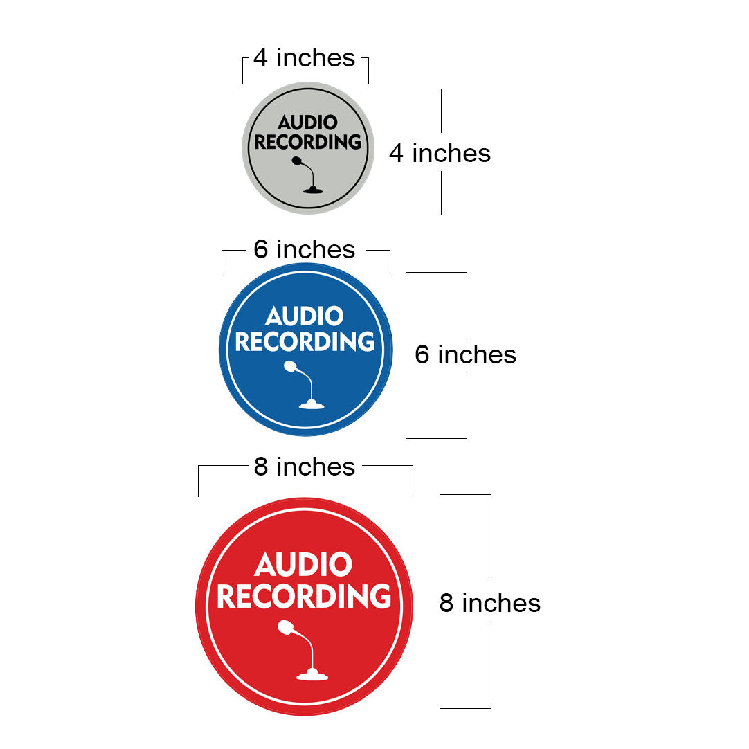 Our Signs ByLITA Circle Audio Recording Sign can be attached to the door, wall or window of your home or business. The sign text and design work is laser engraved into sturdy plastic. Each sign comes with an adhesive foam backing, allowing them to be attached to any flat surface. Comes in multiple colors. Our audio recording signs are great for your home or business.