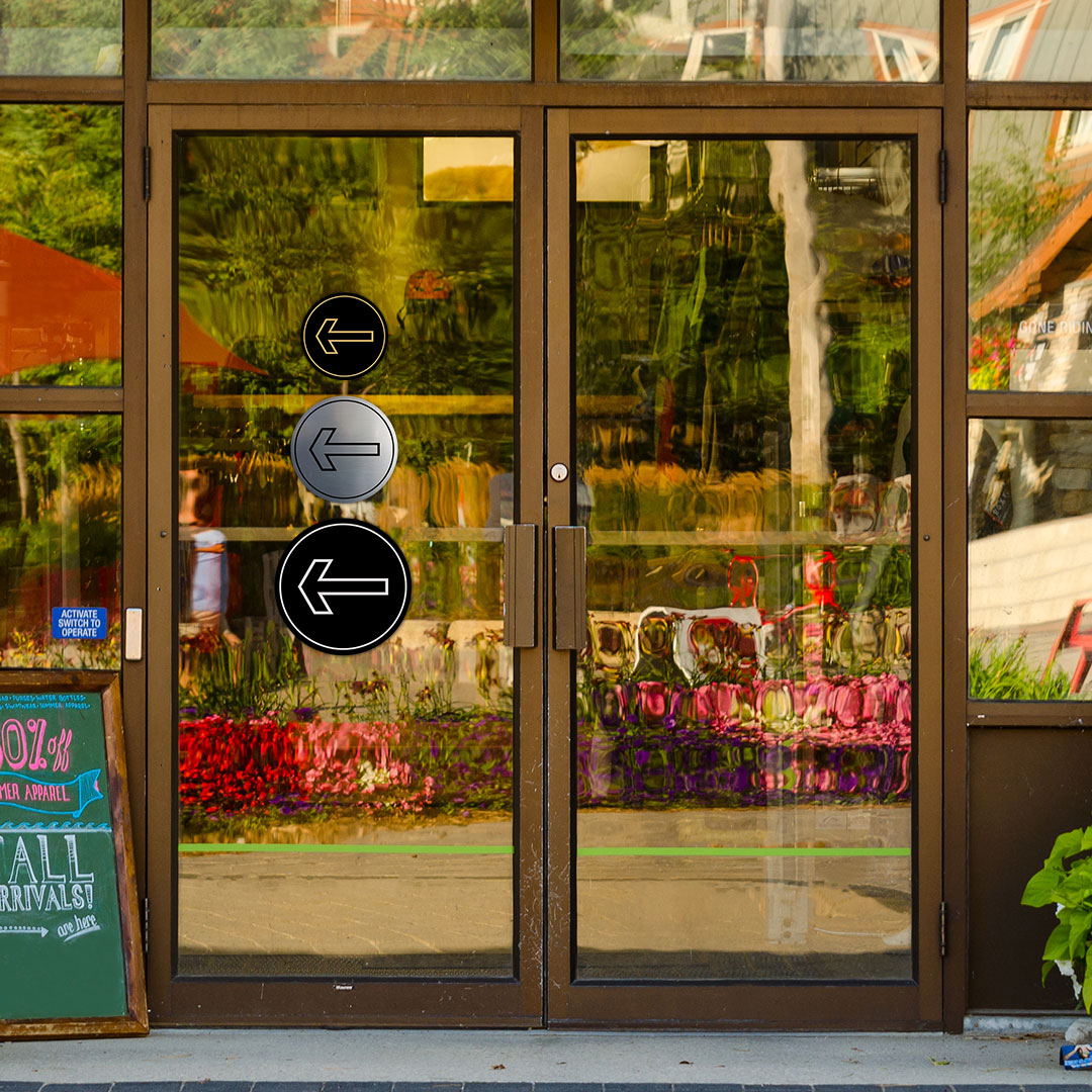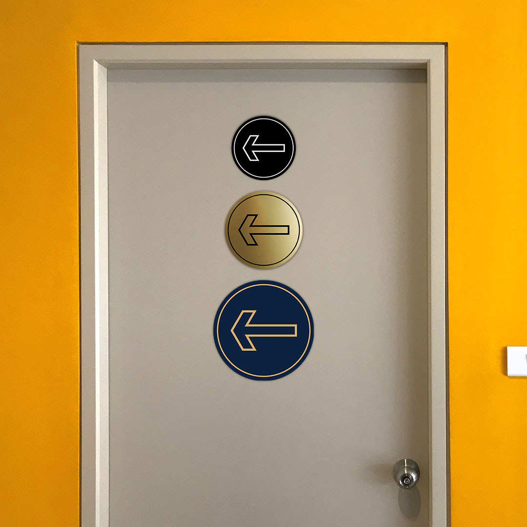Our Signs ByLITA Circle Directional Arrow Left Graphic Door or Wall Sign can be attached to the door, wall or window of your home or business. The sign text and design work is laser engraved into sturdy plastic. Each sign comes with an adhesive foam backing, allowing them to be attached to any flat surface. Comes in multiple colors. Our caution warning sign for your Home, Business and Office Spaces.