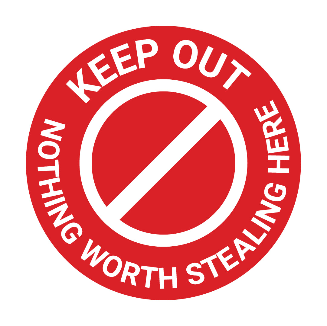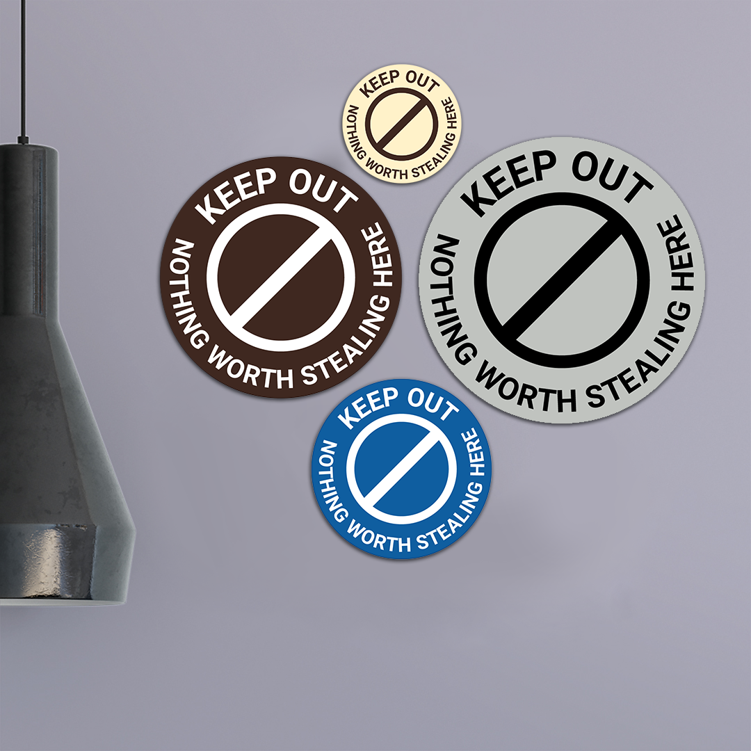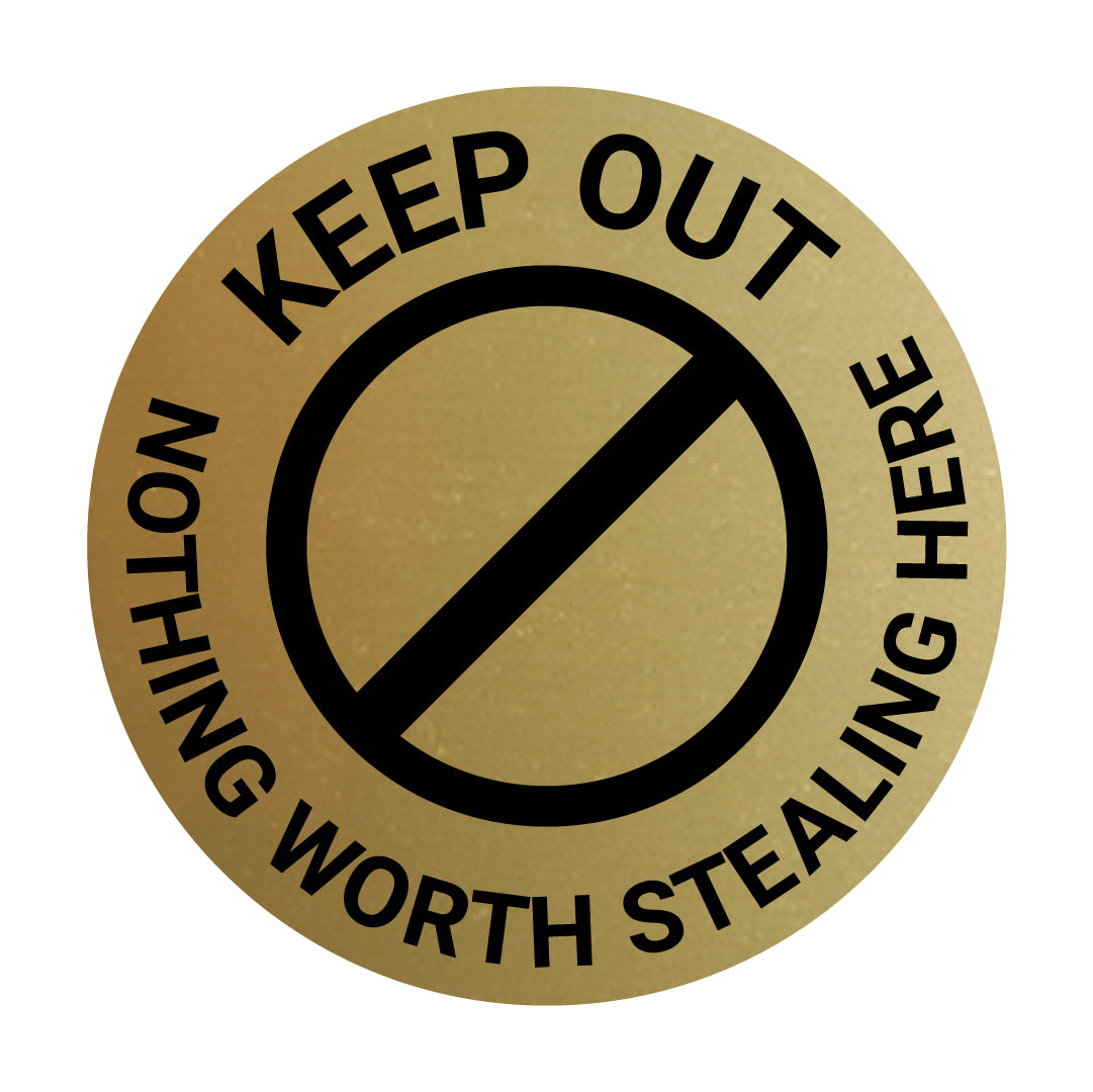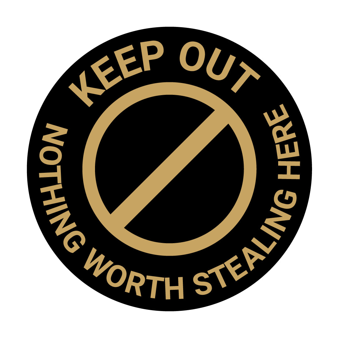Our Signs ByLITA Circle Keep Out Nothing Worth Stealing Here Sign can be attached to the door, wall or window of your home or business. The sign text and design work is laser engraved into sturdy plastic. Each sign comes with an adhesive foam backing, allowing them to be attached...