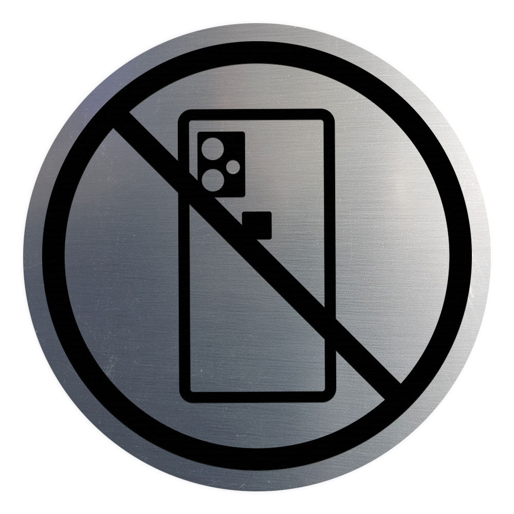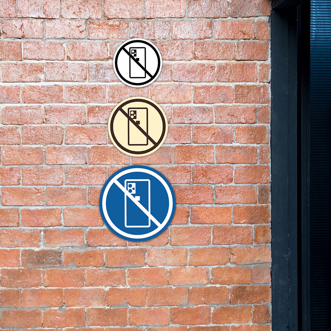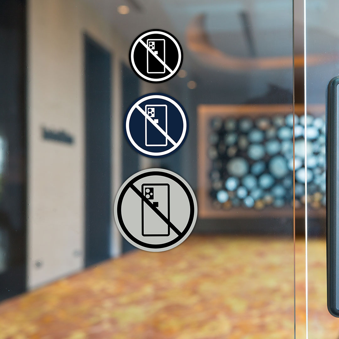 Our Signs ByLITA Circle No Cellphones Graphic Door or Wall Sign can be attached to the door, wall or window of your home or business. The sign text and design work is laser engraved into sturdy plastic. Each sign comes with an adhesive foam backing, allowing them to be attached to any flat surface. Comes in multiple colors. Our caution warning sign for your Home, Business and Office Spaces.