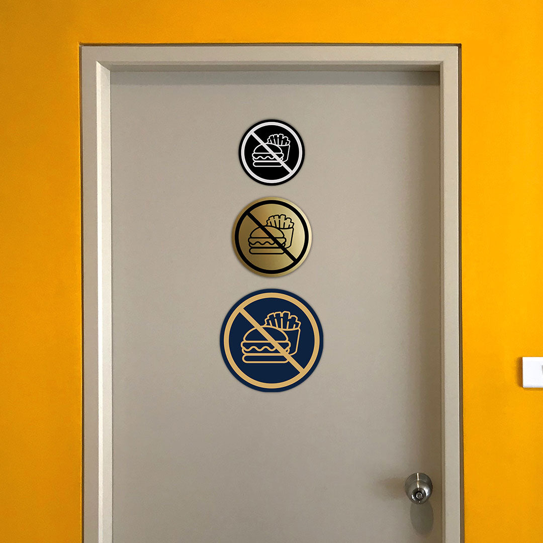 Our Signs ByLITA Circle No Food Allowed Graphic Sign can be attached to the door, wall or window of your home or business. The sign text and design work is laser engraved into sturdy plastic. Each sign comes with an adhesive foam backing, allowing them to be attached to any flat surface. Comes in multiple colors. Our caution warning sign for your Home, Business and Office Spaces.