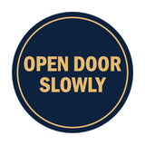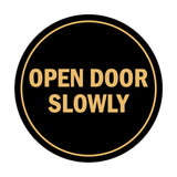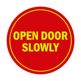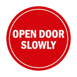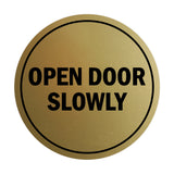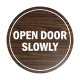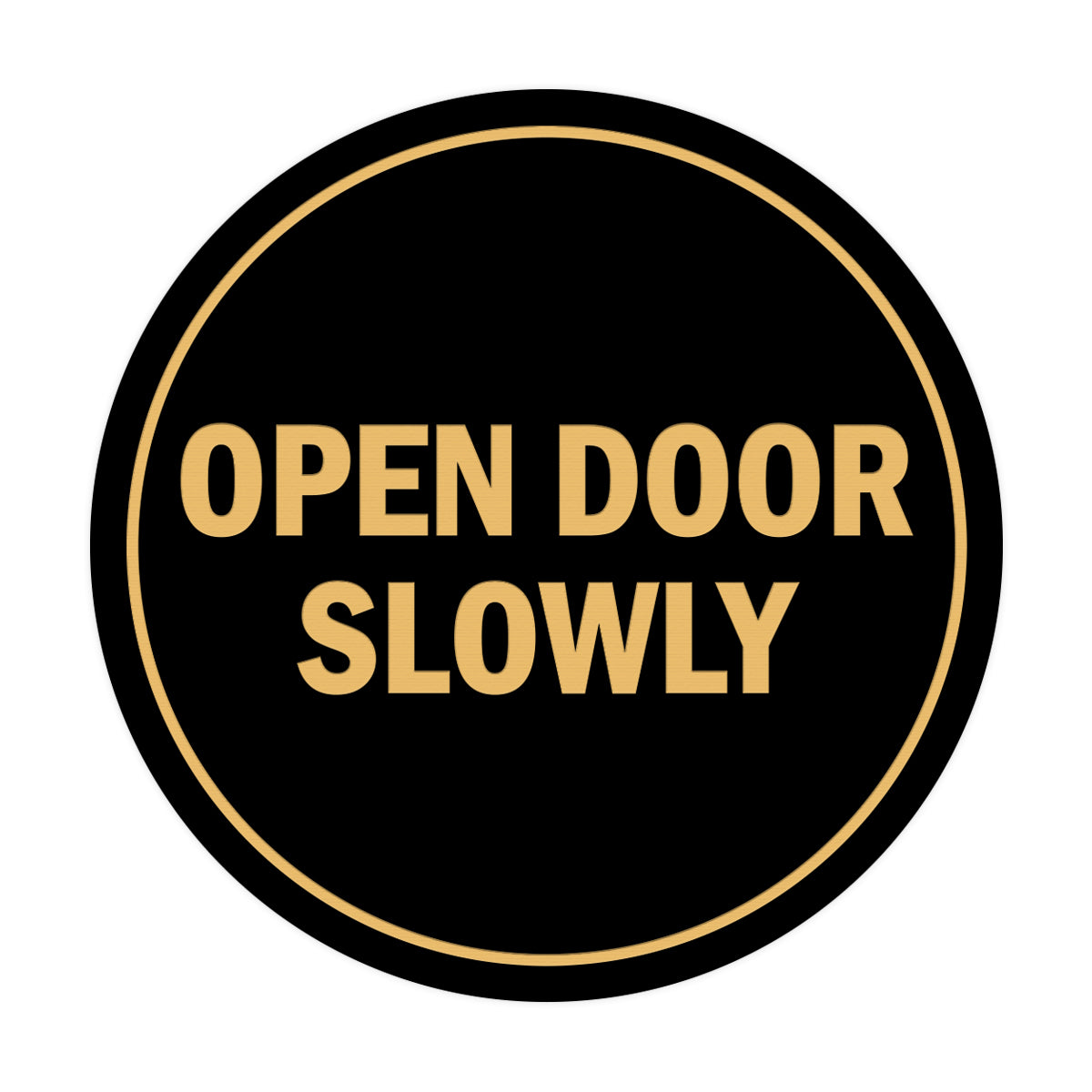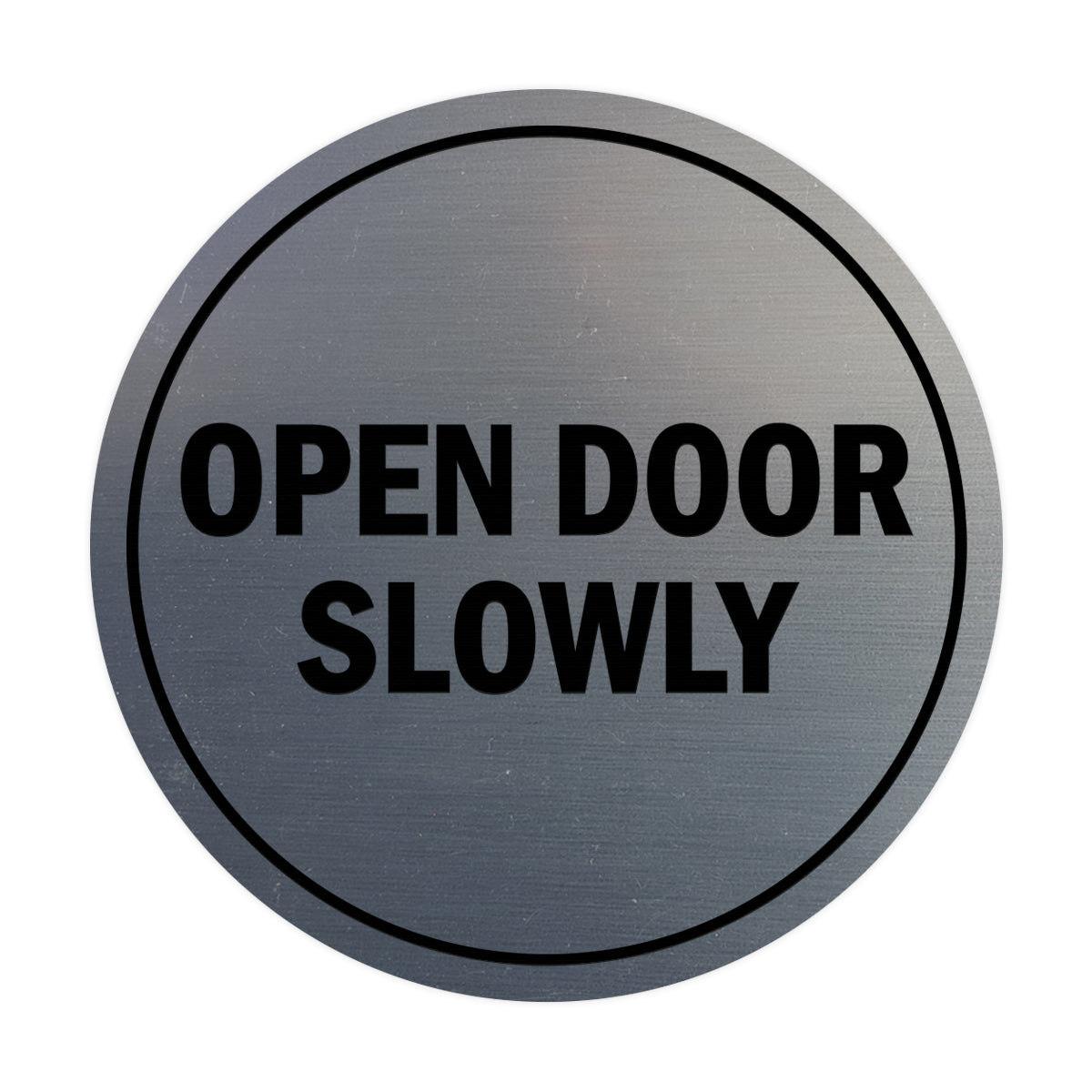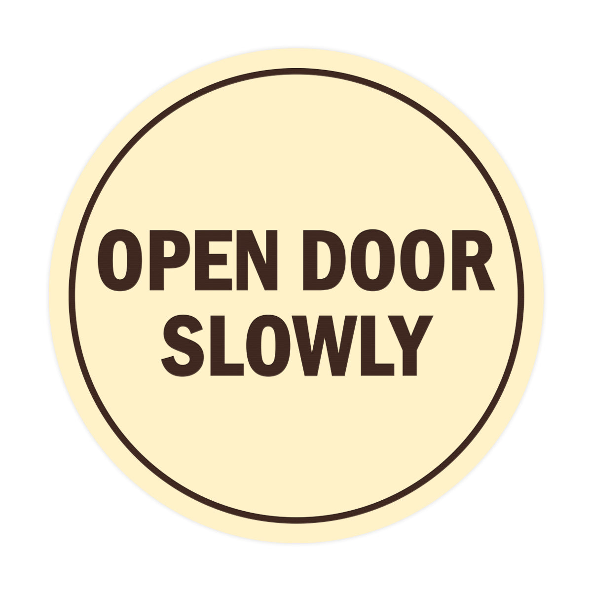 Our Signs ByLITA Circle Open Door Slowly Door/Wall sign can be attached to the door, wall or window of your home or business. The sign has been laser engraved so the words are all etched into the plastic. Comes in multiple colors.
