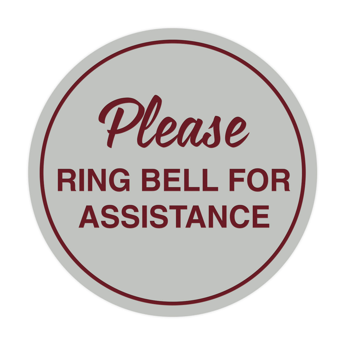Our Signs ByLITA Circle Please Ring Bell For Assistance Door/Wall sign can be attached to the door, wall or window of your home or business. The sign has been laser engraved so the words are all etched into the plastic. Comes in multiple colors.
