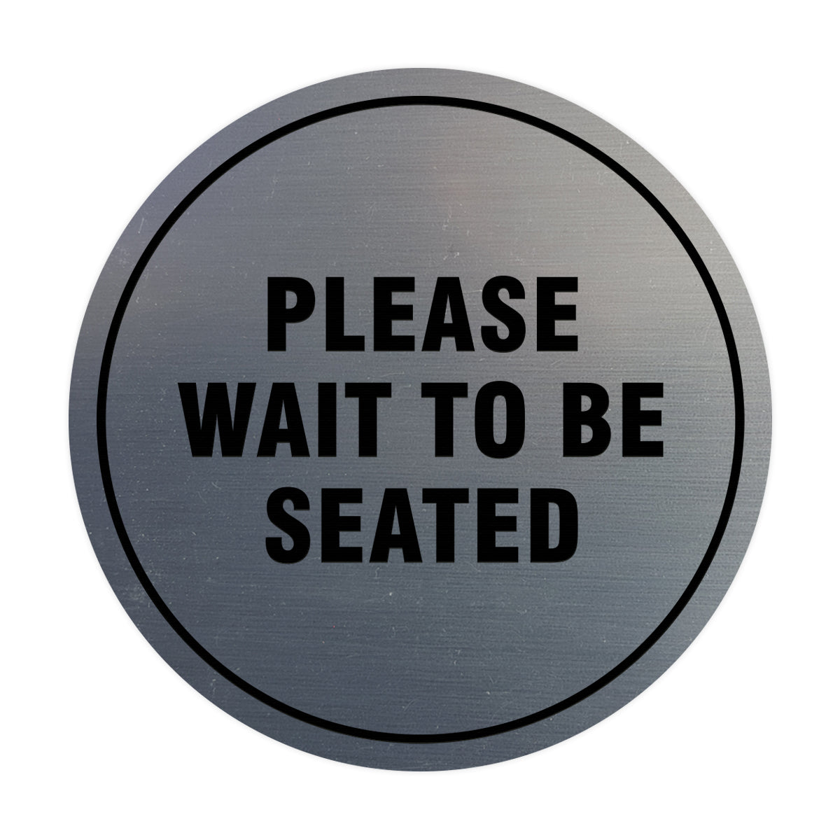 Our Signs ByLITA Circle Please Wait To Be Seated Door/Wall sign can be attached to the door, wall or window of your home or business. The sign has been laser engraved so the words are all etched into the plastic. Comes in multiple colors.
