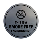 Our Signs ByLITA Circle This Is A Smoke Free Environment Door/Wall sign can be attached to the door, wall or window of your home or business. The sign has been laser engraved so the words are all etched into the plastic. Comes in multiple colors.