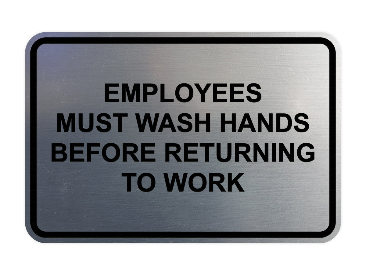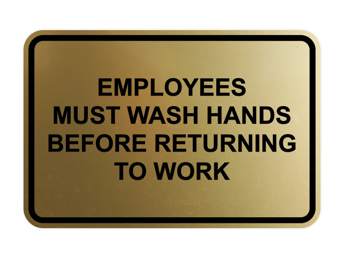 Our Employees Must Wash Hands Before Returning To Work Door/Wall sign can be attached to the door, wall or window of your home or business. The sign has been laser engraved so the words are all etched into the plastic. Comes in multiple colors.