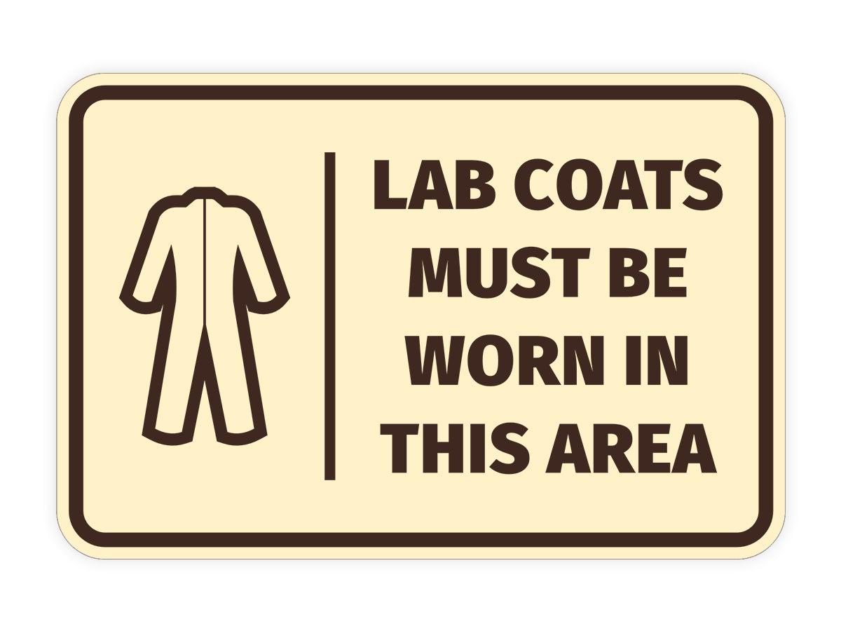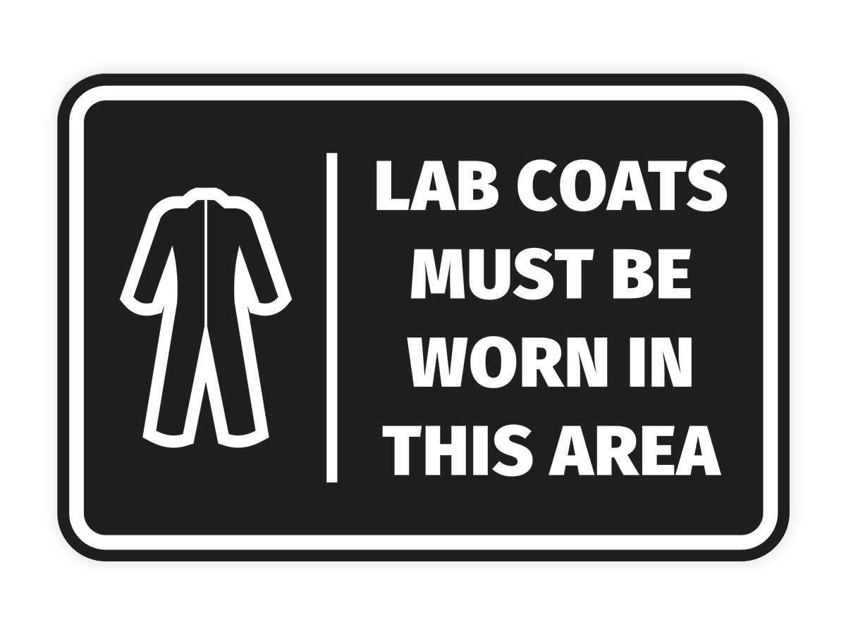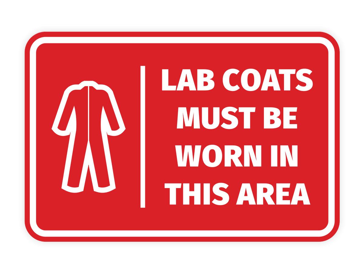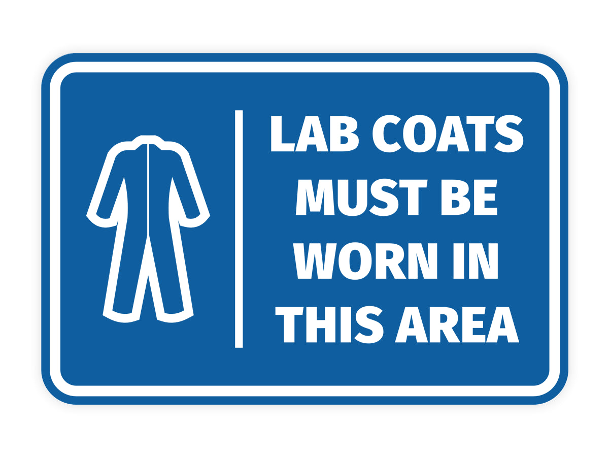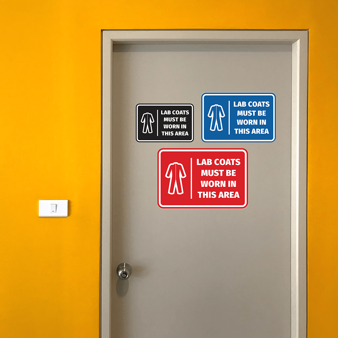 Our Signs ByLITA Classic Framed Lab Coats Must Be Worn In This Area Sign can be attached to the door, wall or window. Our signs are designed and manufactured by us. The signs are made out of durable material that is weather resistant. Each sign comes with an adhesive foam backing, allowing them to be attached to any flat surface. Comes in multiple colors. Our industry and manufacturing health and safety warning signs are great for your home, property or office.