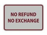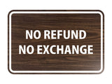 Our Classic Framed No Refund No Exchange Door/Wall sign can be attached to the door, wall or window of your home or business. The sign has been laser engraved so the words are all etched into the plastic. Comes in multiple colors.