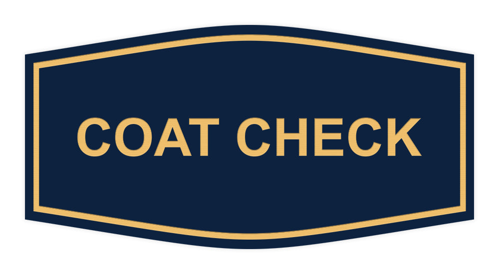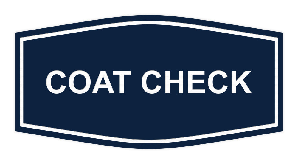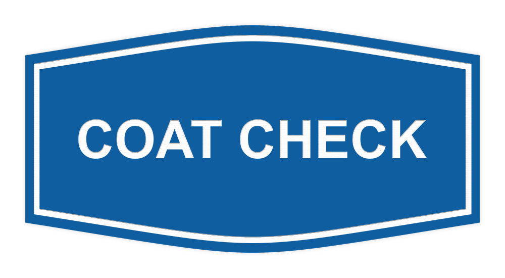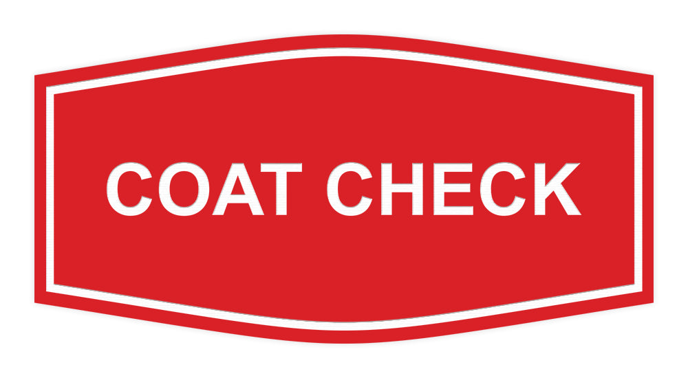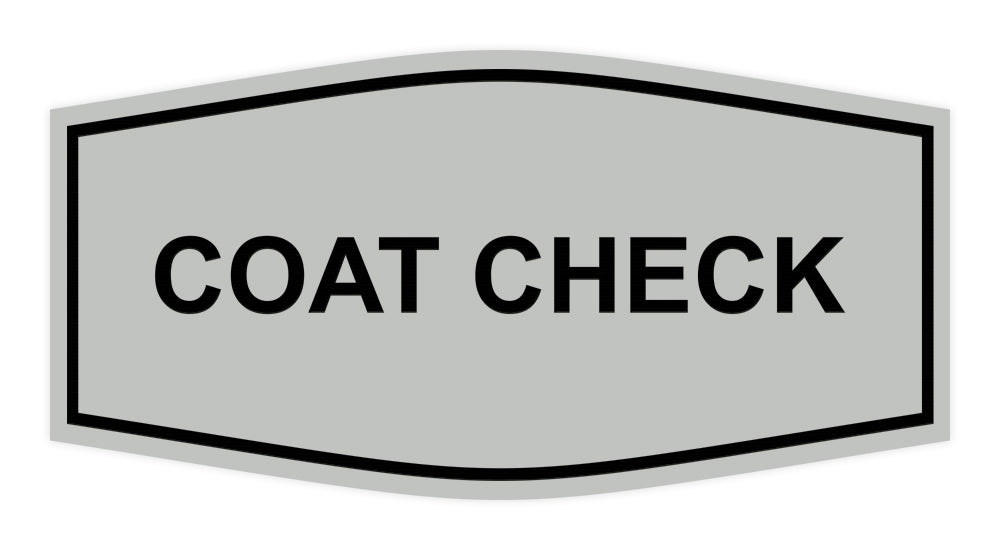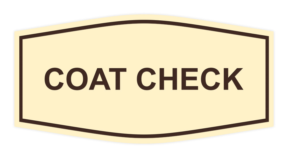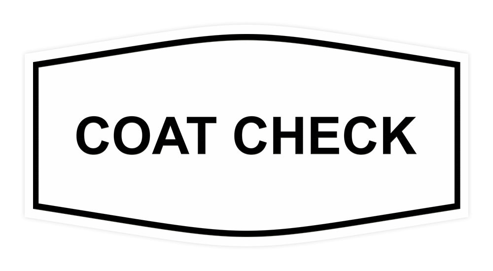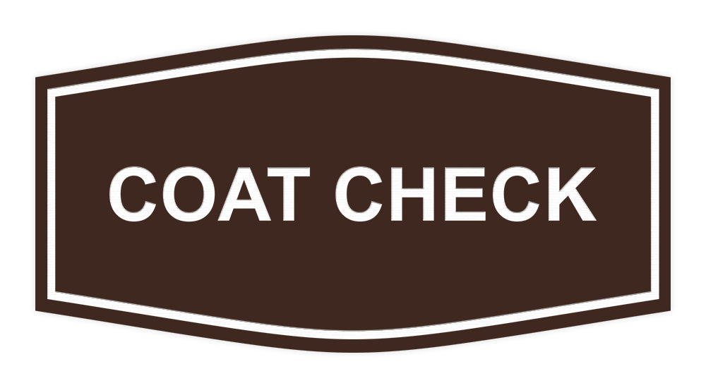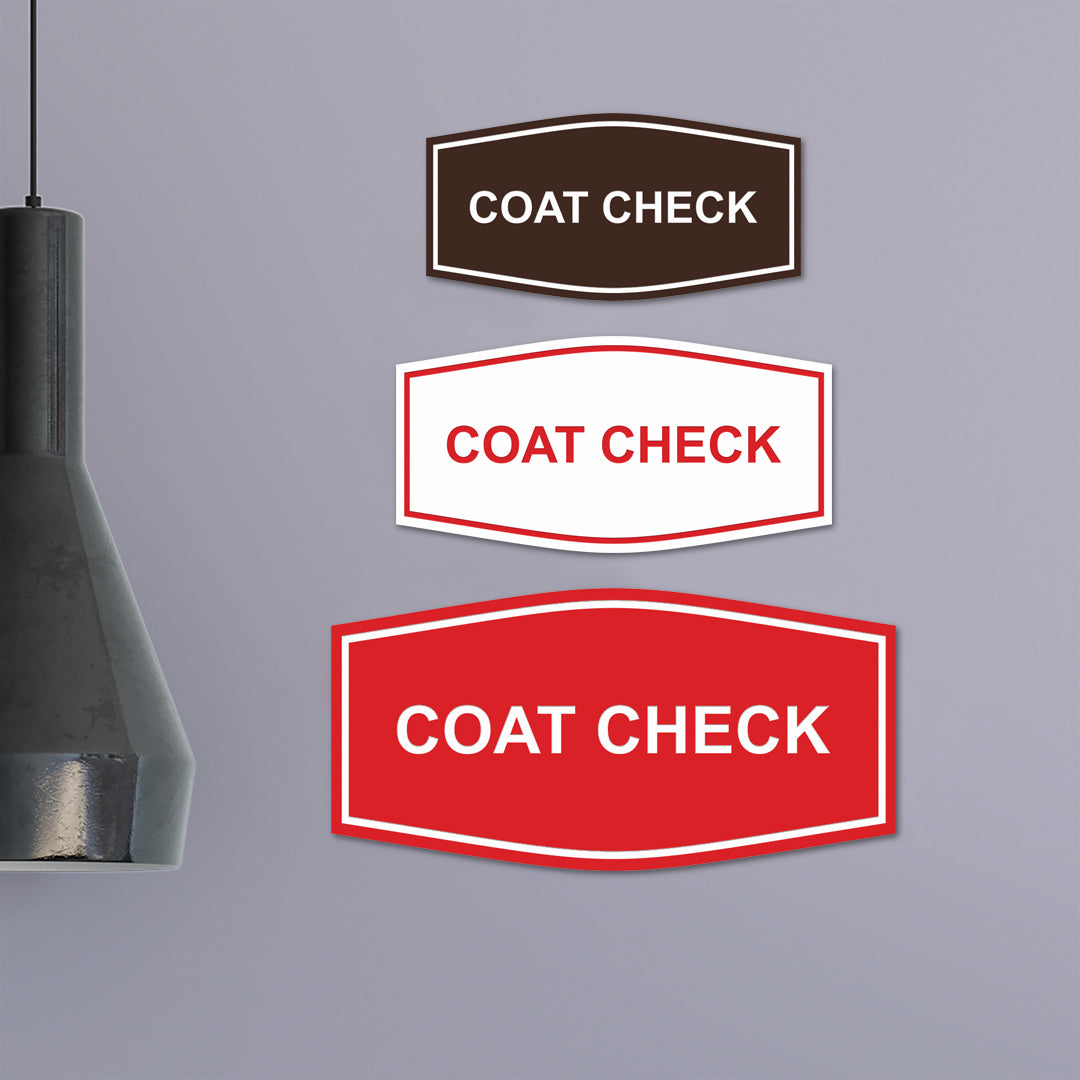 Our Fancy Coat Check/Wall sign can be attached to the door, wall or window of your home or business. The sign has been laser engraved so the words are all etched into the plastic. Comes in multiple colors. Small sign is 3"H X 6" W, Medium Sign 3.5" x 7", Large Signs 4.5" x 9"