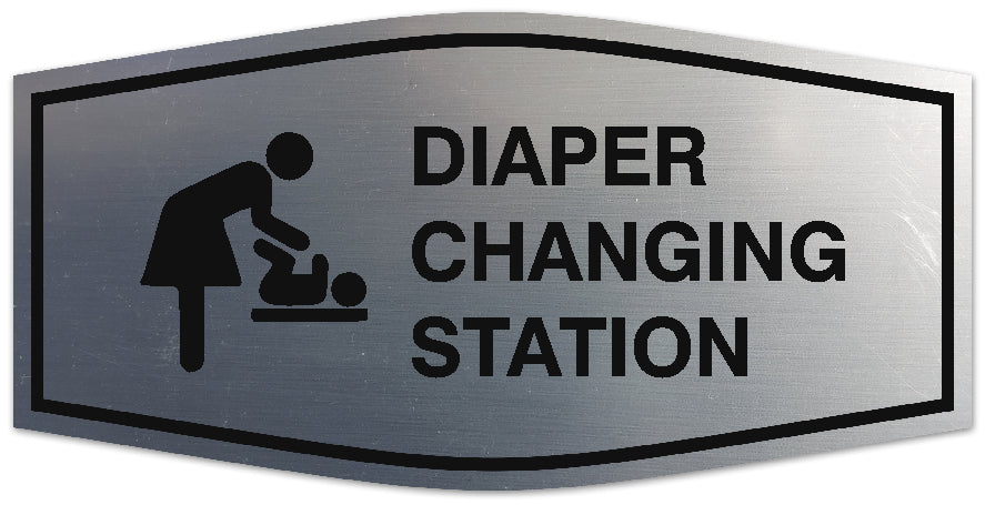 Our Signs ByLITA Fancy Diaper changing station Sign can be attached to the door, wall or window of your home or business. The sign text and design work is laser engraved into sturdy plastic. Each sign comes with an adhesive foam backing, allowing them to be attached to any flat surface. Comes in multiple colors. Our diaper changing station signs are great for your business, parlor or shop.
