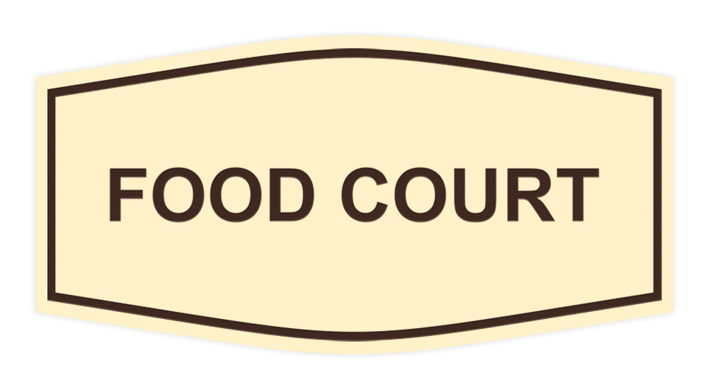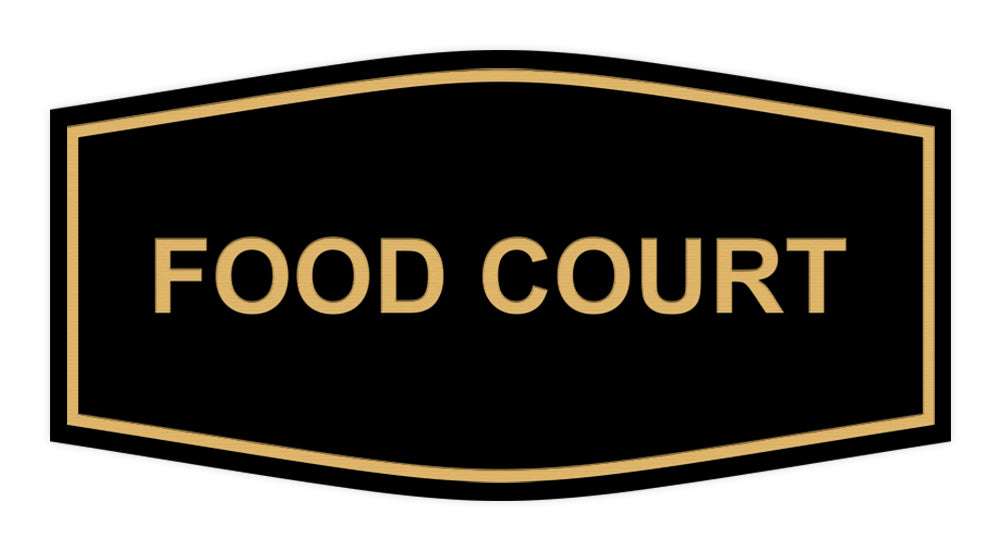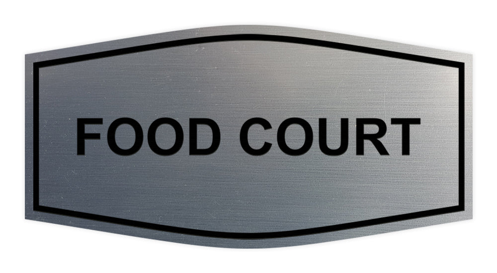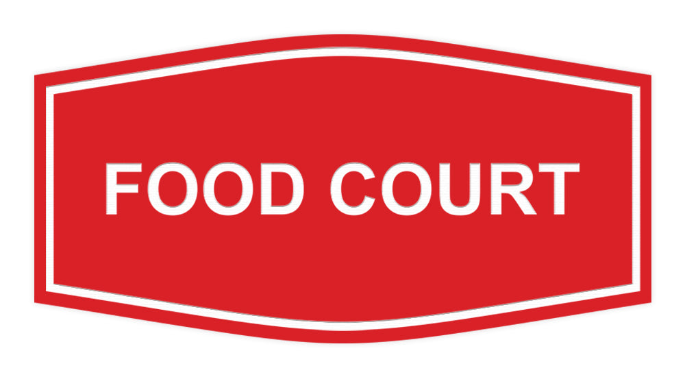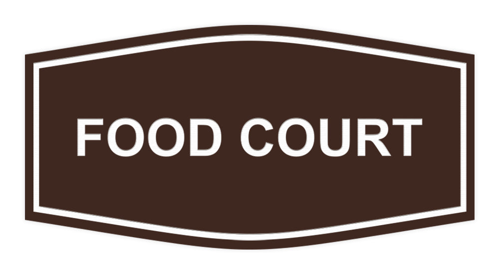 Our Fancy Food Court/Wall sign can be attached to the door, wall or window of your home or business. The sign has been laser engraved so the words are all etched into the plastic. Comes in multiple colors. Small signs are 3"H X 6" W, Medium Signs are 3.5" X 7" and our Large signs are 4.5" x 9".