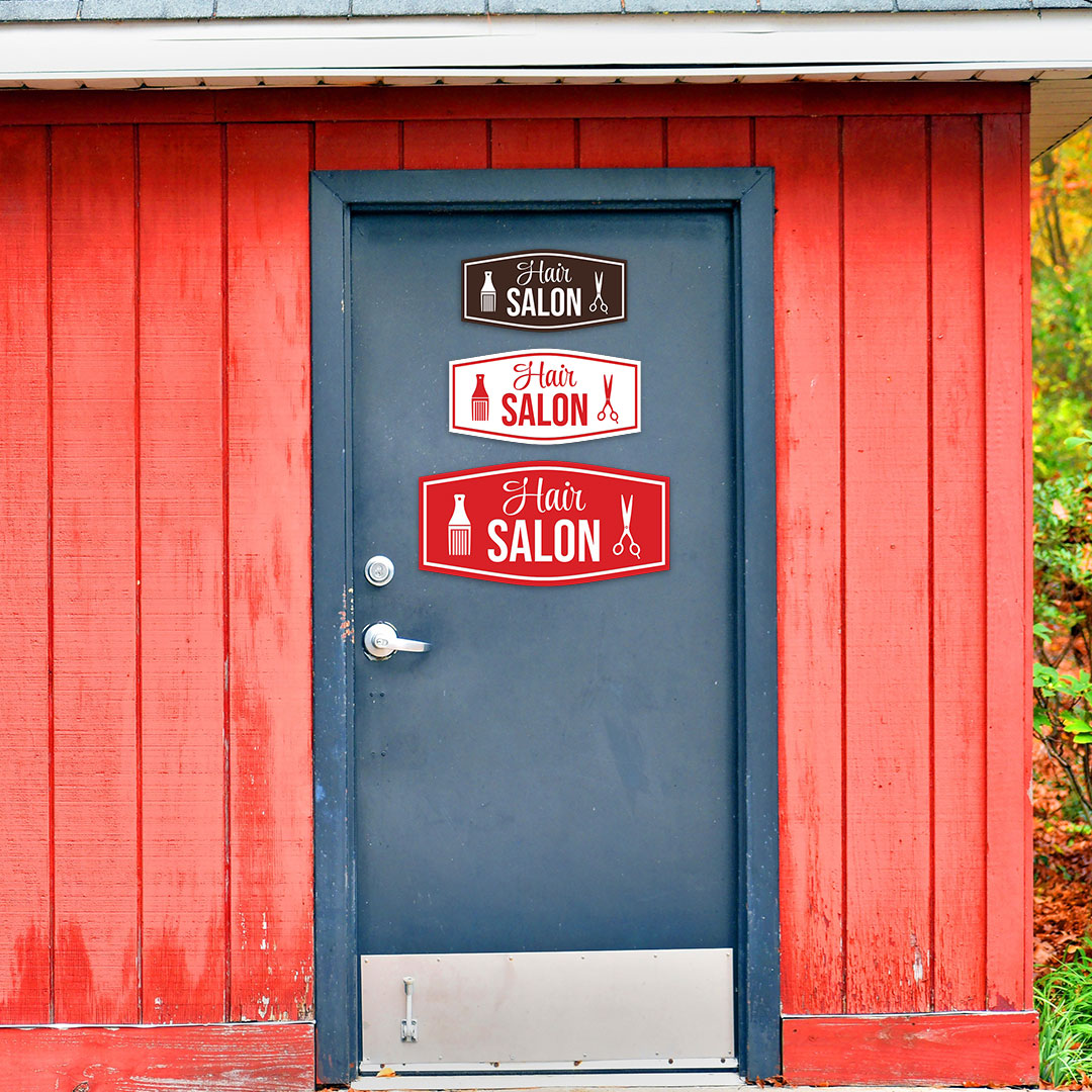 Our Signs ByLITA Fancy Hair Salon Sign can be attached to the door, wall or window of your home or business. The sign text and design work is laser engraved into sturdy plastic. Each sign comes with an adhesive foam backing, allowing them to be attached to any flat surface. Comes in multiple colors. Our barber shop signs are great for your business, parlor or shop.