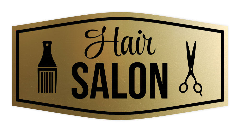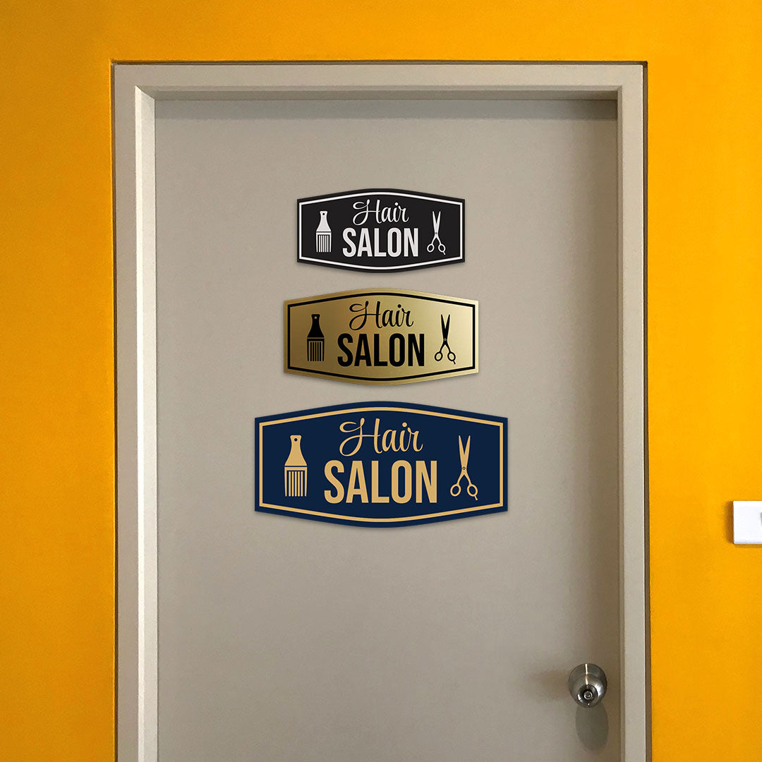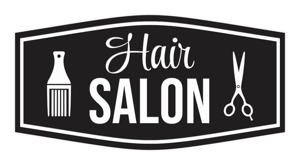 Our Signs ByLITA Fancy Hair Salon Sign can be attached to the door, wall or window of your home or business. The sign text and design work is laser engraved into sturdy plastic. Each sign comes with an adhesive foam backing, allowing them to be attached to any flat surface....