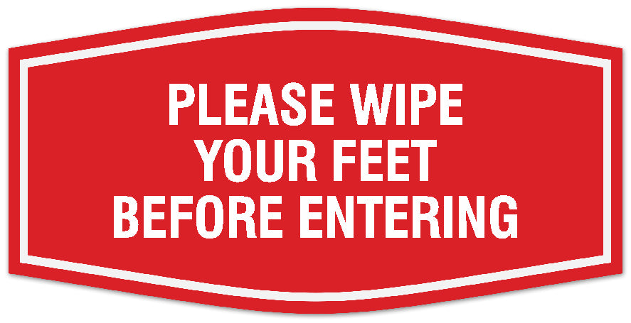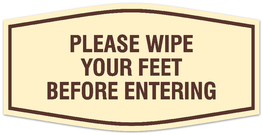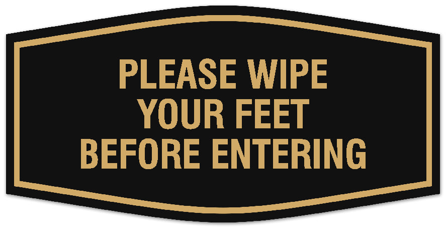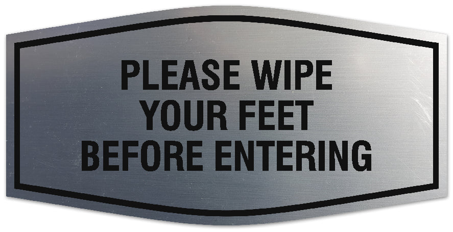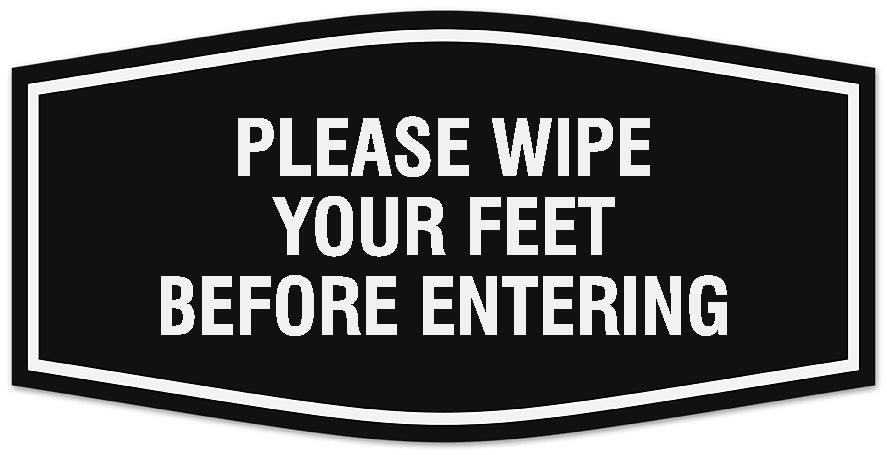 Our Signs ByLITA Fancy Please wipe your feet before entering Sign can be attached to the door, wall or window of your home or business. The sign text and design work is laser engraved into sturdy plastic. Each sign comes with an adhesive foam backing, allowing them to be attached to any flat surface. Comes in multiple colors. Our hospitality signs are great for your business, property or shop.