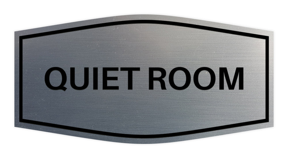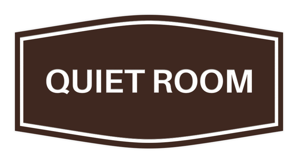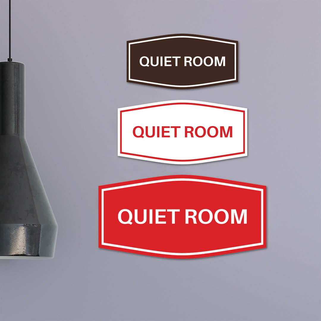 Our Fancy Quiet Room/Wall sign can be attached to the door, wall or window of your home or business. The sign has been laser engraved so the words are all etched into the plastic. Comes in multiple colors. Small sign is 3"H X 6" W, Medium Sign 3.5" x 7", Large Signs 4.5" x 9"