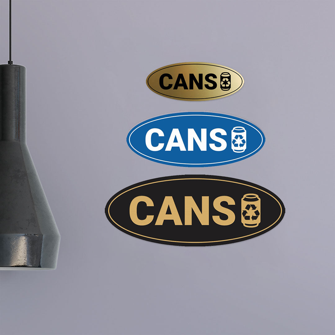 Elevate your cans charm and functionality with the Oval Cans Sign. Laser-engraved for impeccable clarity this sign's quality guarantees a lasting presence. Its resilience against wear and tear ensures it remains polished and impactful, maintaining it's appeal over time. Installation is a breeze with the included double-sided foam adhesive tape. Whether placed on a cans recycling entrance door, a dedicated cans recycling section, this sign adheres securely to any clean, flat surface. With a wide range of colors to choose from, this sign can suit any decor style. By choosing the Signs ByLITA Oval Cans Door or Wall Sign, you're investing in a versatile tool that embodies your cans essence and guides patrons with elegance and clarity.