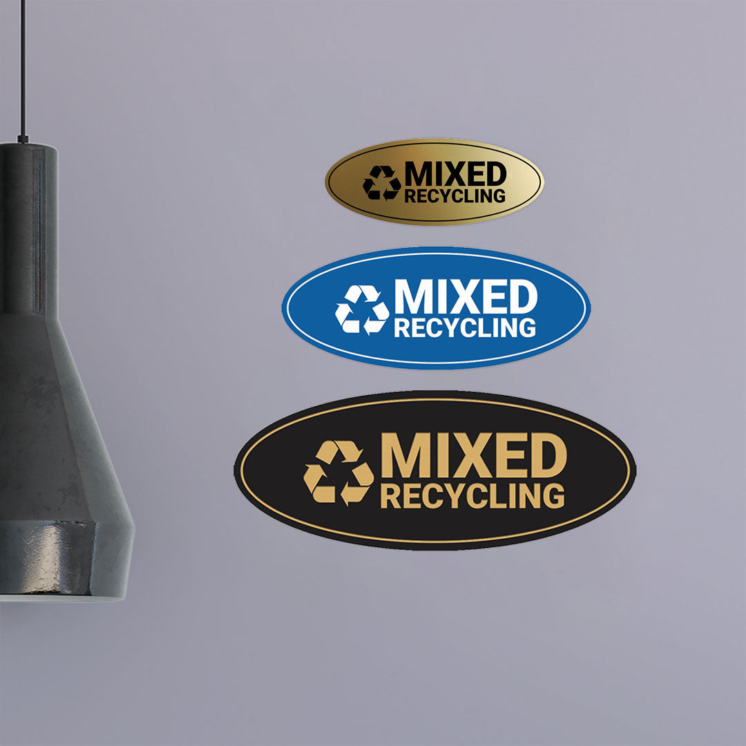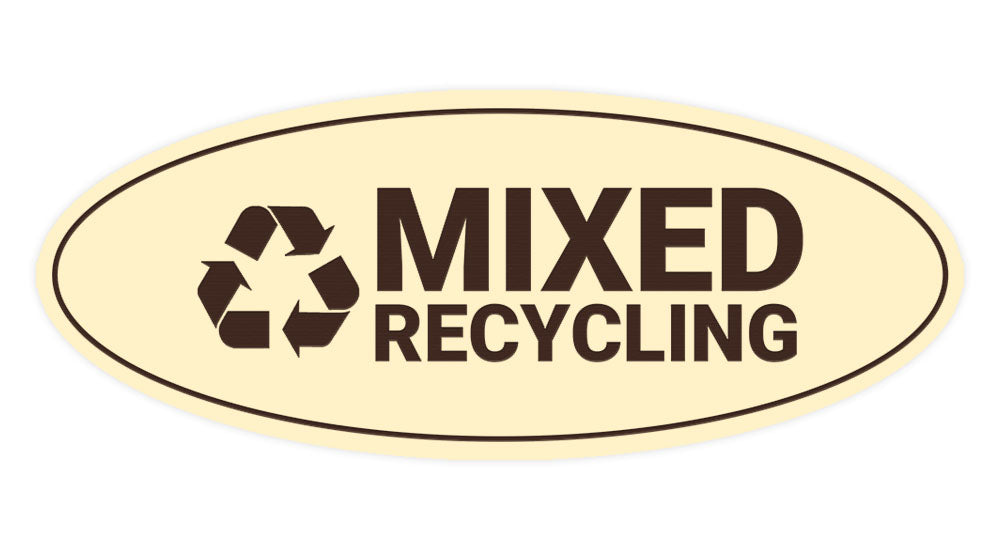 Signs ByLITA Oval Mixed recycling Sign - Laser-Engraved Lettering