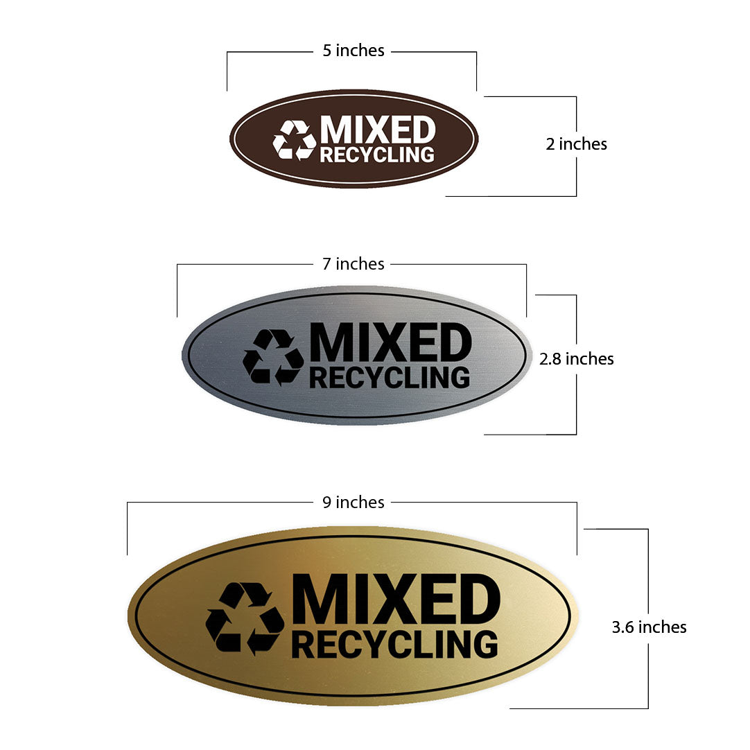 Elevate your mixed recycling charm and functionality with the Oval Mixed recycling Sign. Laser-engraved for impeccable clarity this sign's quality guarantees a lasting presence. Its resilience against wear and tear ensures it remains polished and impactful, maintaining it's appeal over time. Installation is a breeze with the included double-sided foam adhesive tape. Whether placed on a mixed recycling entrance door, a dedicated mixed recycling section, this sign adheres securely to any clean, flat surface. With a wide range of colors to choose from, this sign can suit any decor style. By choosing the Signs ByLITA Oval Mixed recycling Door or Wall Sign, you're investing in a versatile tool that embodies your mixed recycling essence and guides patrons with elegance and clarity.