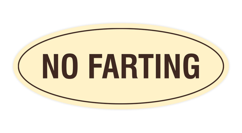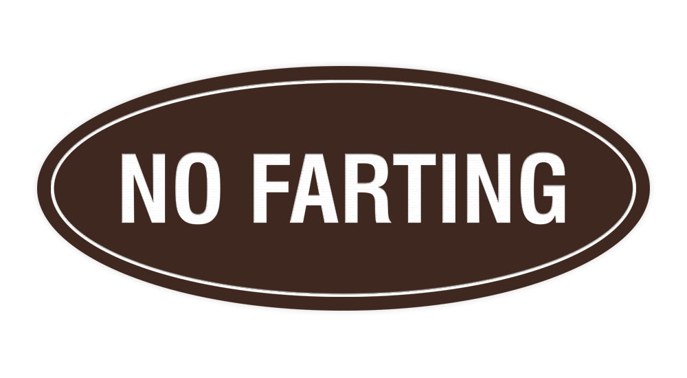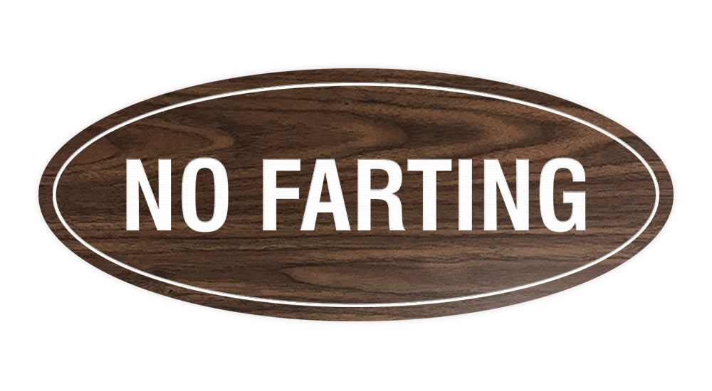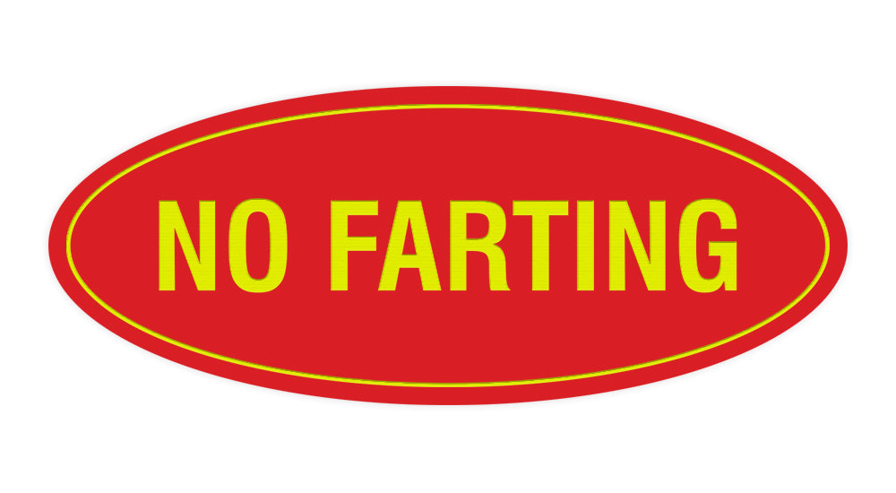 Our Signs ByLITA Oval No Farting Door/Wall sign can be attached to the door, wall or window of your home or business. The sign has been laser engraved so the words are all etched into the plastic. Comes in multiple colors.