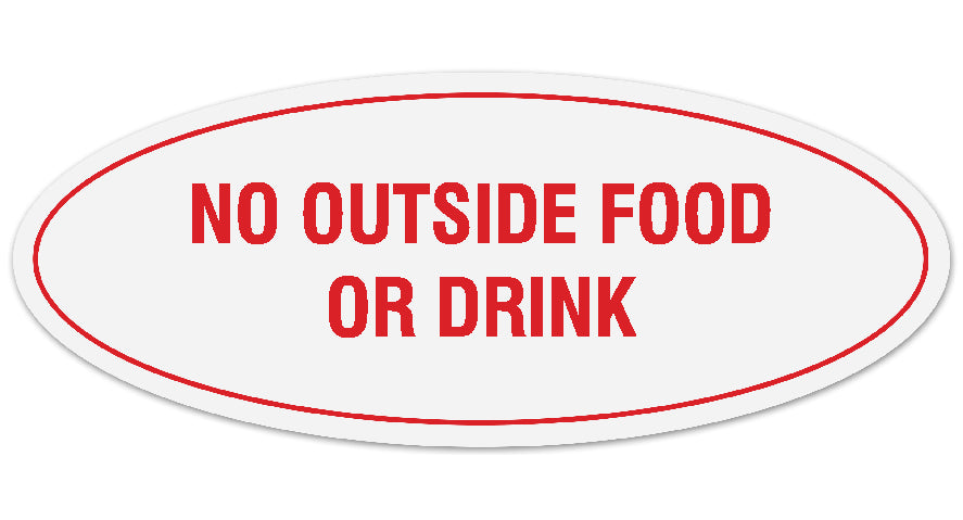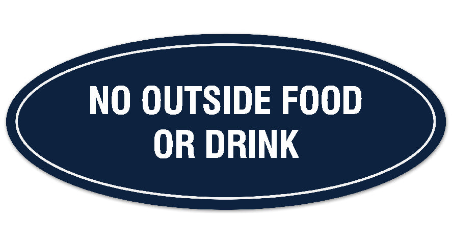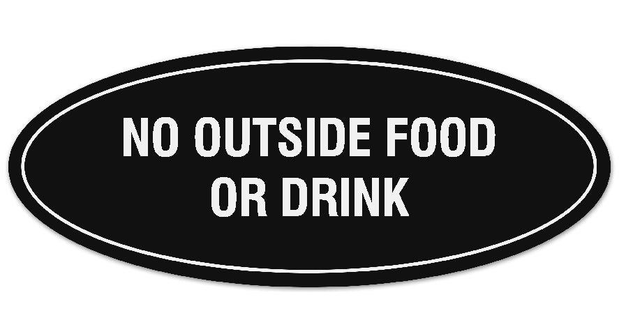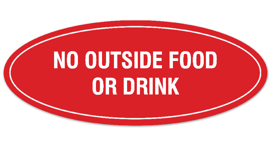 Elevate your no outside food or drink charm and functionality with the Oval No Outside Food or Drink Sign. Laser-engraved for impeccable clarity this sign's quality guarantees a lasting presence. Its resilience against wear and tear ensures it remains polished and impactful, maintaining it's appeal over time. Installation is a breeze with the included double-sided foam adhesive tape. Whether placed on a no outside food or drink entrance door, a dedicated no outside food or drink section, this sign adheres securely to any clean, flat surface. Its adaptability lets you showcase your no outside food or drink identity where it matters most. Its elegant design, harmonizing aesthetics and organization seamlessly. With a wide range of colors to choose from, this sign can suit any decor style. By choosing the Signs ByLITA Oval No Outside Food or Drink Door or Wall Sign, you're investing in a versatile tool that embodies your no outside food or drink essence and guides patrons with elegance and clarity.