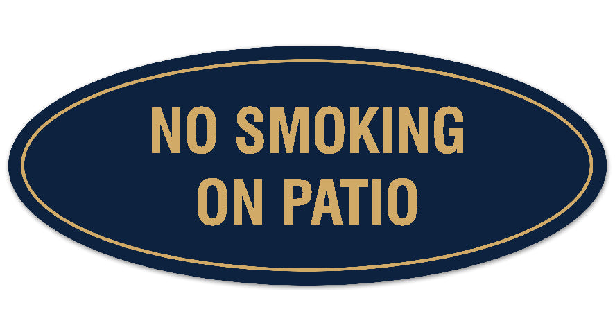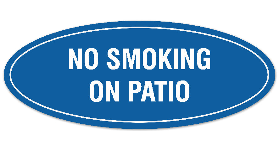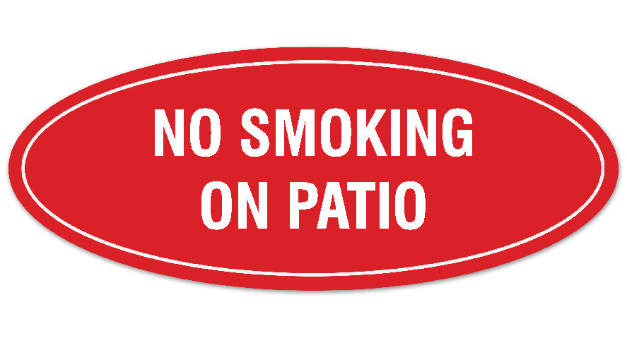 Elevate your no smoking charm and functionality with the Oval NO SMOKING ON PATIO Sign. Laser-engraved for impeccable clarity this sign's quality guarantees a lasting presence. Its resilience against wear and tear ensures it remains polished and impactful, maintaining it's appeal over time. Installation is a breeze with the included double-sided foam adhesive tape. Whether placed on a no smoking entrance door, a dedicated no smoking section, this sign adheres securely to any clean, flat surface. Its adaptability lets you showcase your business hours identity where it matters most. Its elegant design, harmonizing aesthetics and organization seamlessly. With a wide range of colors to choose from, this sign can suit any decor style. By choosing the Signs ByLITA Oval NO SMOKING ON PATIO Door or Wall Sign, you're investing in a versatile tool that embodies your no smoking essence and guides patrons with elegance and clarity.