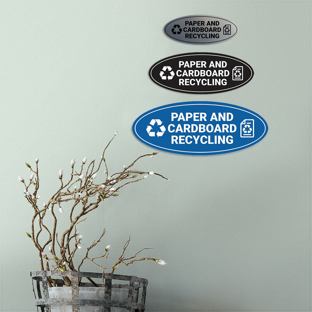 Elevate your paper and cardboard recycling charm and functionality with the Oval Paper and cardboard recycling Sign. Laser-engraved for impeccable clarity this sign's quality guarantees a lasting presence. Its resilience against wear and tear ensures it remains polished and impactful, maintaining it's appeal over time. Installation is a breeze with the included double-sided foam adhesive tape. Whether placed on a paper and cardboard recycling entrance door, a dedicated paper and cardboard recycling section, this sign adheres securely to any clean, flat surface. Its adaptability lets you showcase your paper and cardboard recycling identity where it matters most. Its elegant design, harmonizing aesthetics and organization seamlessly. With a wide range of colors to choose from, this sign can suit any decor style. By choosing the Signs ByLITA Oval Paper and cardboard recycling Door or Wall Sign, you're investing in a versatile tool that embodies your paper and cardboard recycling essence and guides patrons with elegance and clarity.