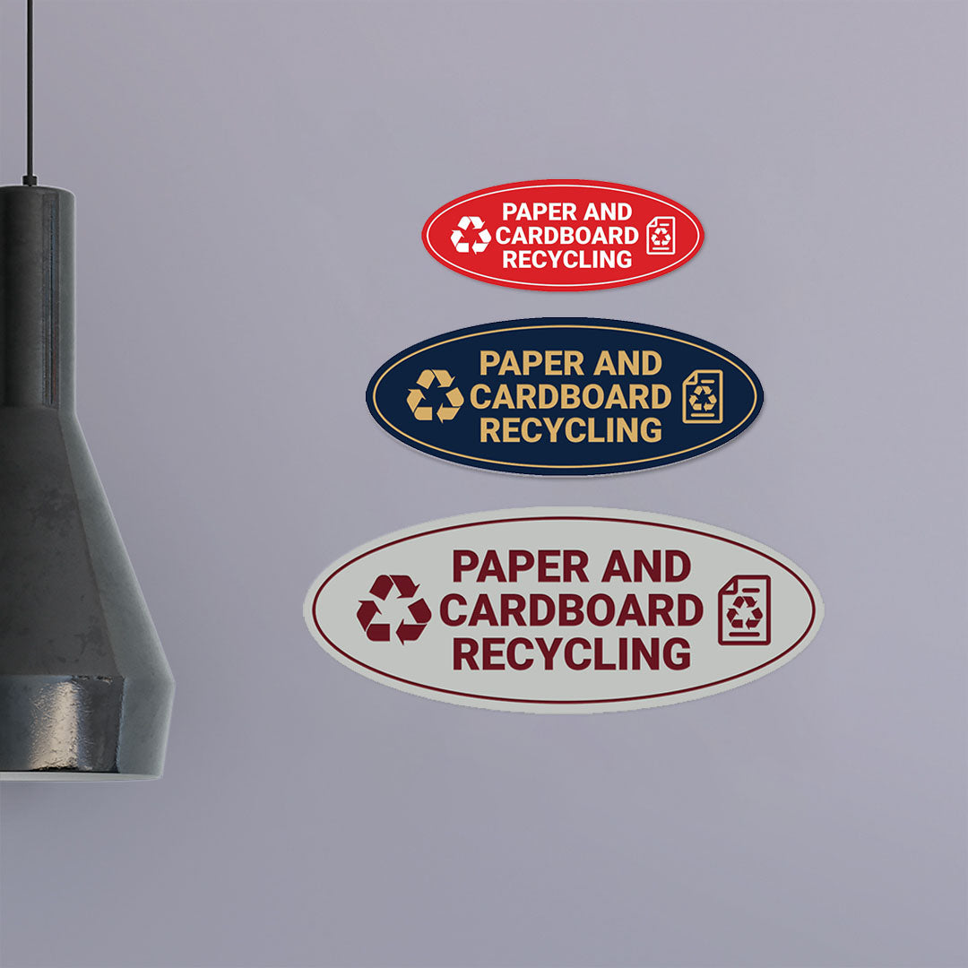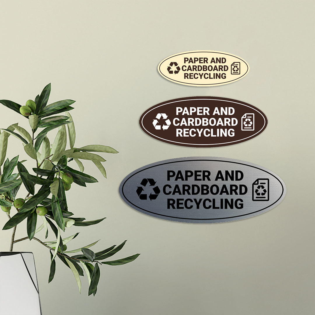 Signs ByLITA Oval Paper and cardboard recycling Sign - Laser-Engraved Lettering