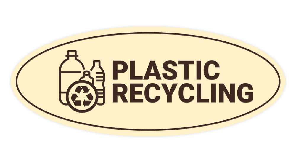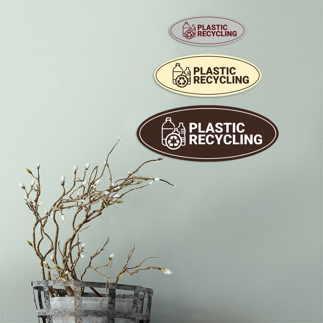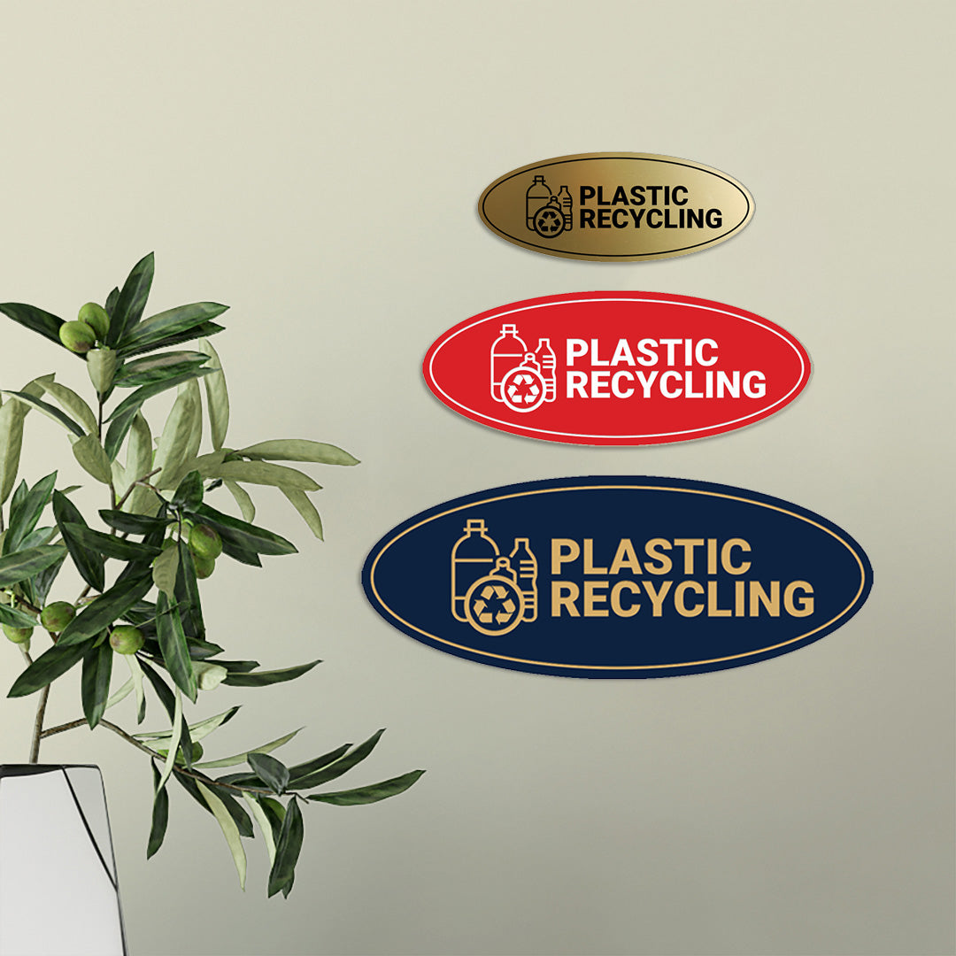Elevate your plastic recycling charm and functionality with the Oval Plastic recycling Sign. Laser-engraved for impeccable clarity this sign's quality guarantees a lasting presence. Its resilience against wear and tear ensures it remains polished and impactful, maintaining it's appeal over time. Installation is a breeze with the included double-sided foam...