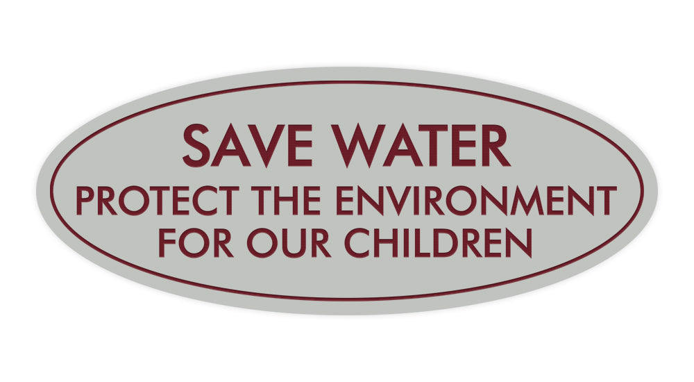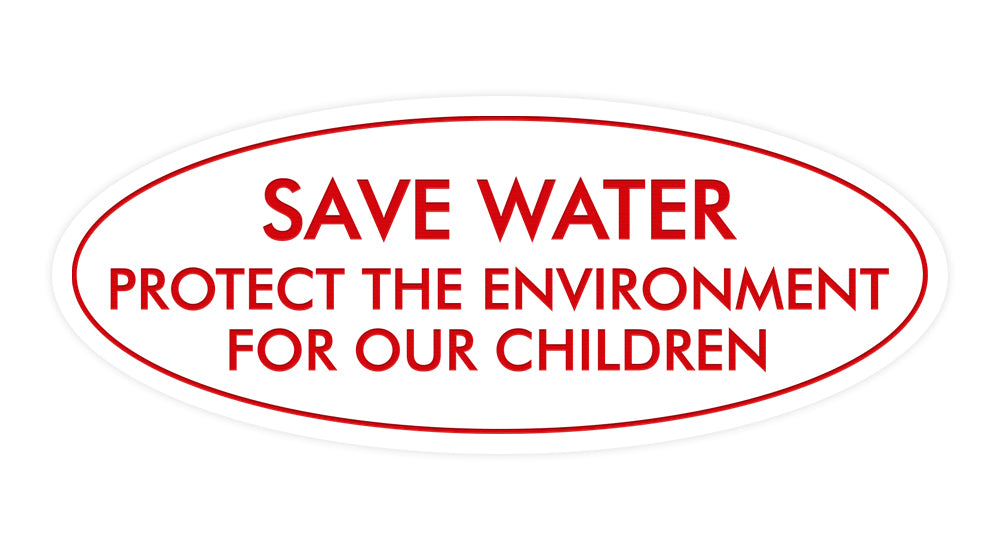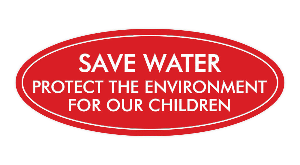 Our Signs ByLITA Oval Save Water Protect the Environment Door/Wall sign can be attached to the door, wall or window of your home or business. The sign has been laser engraved so the words are all etched into the plastic. Comes in multiple colors.
