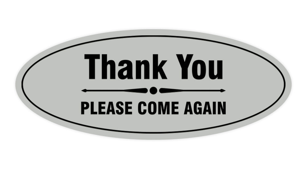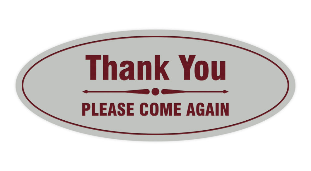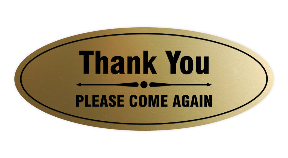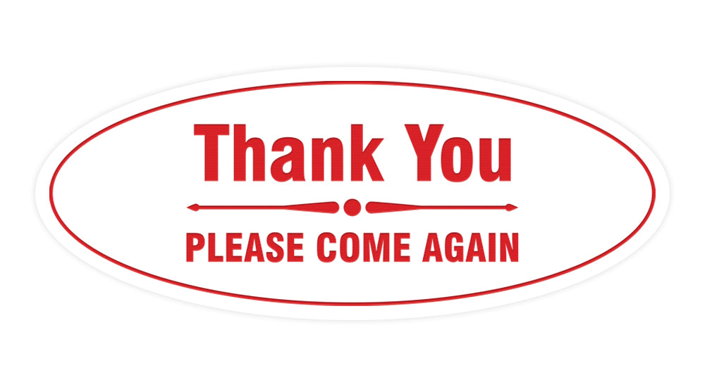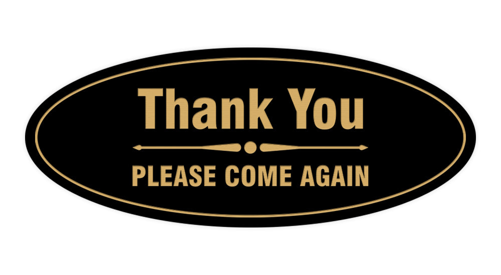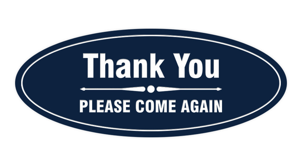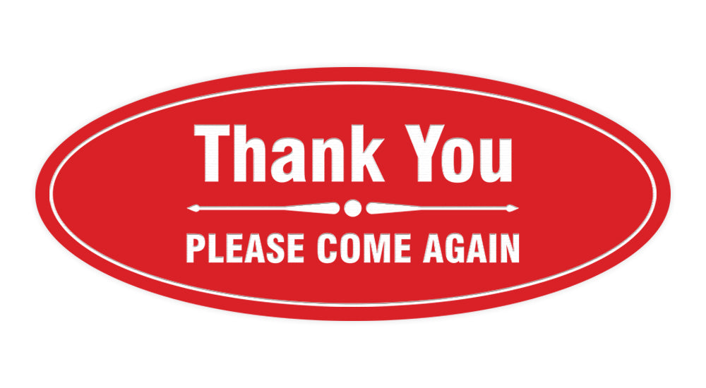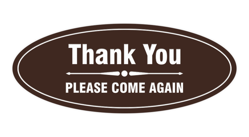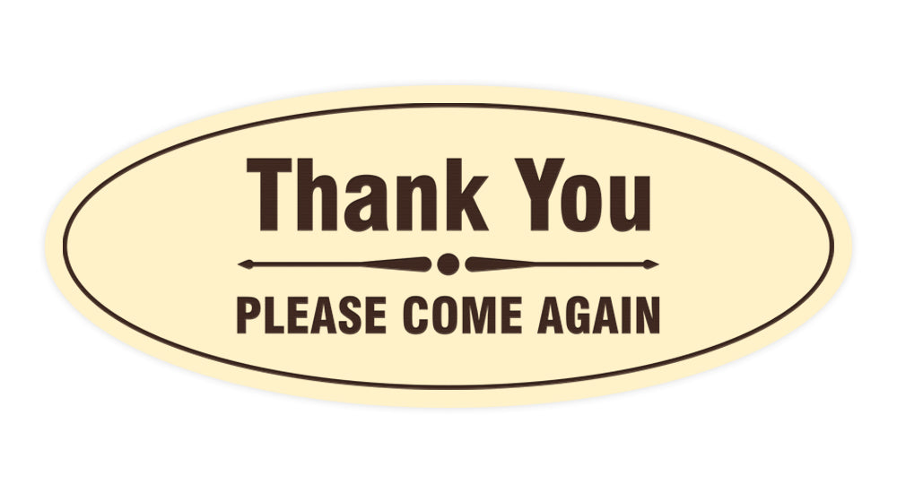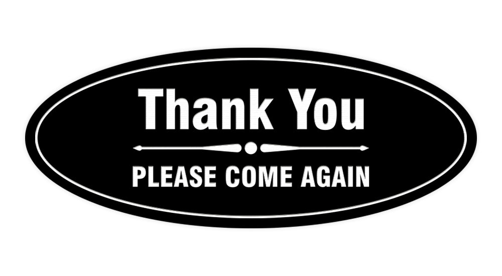 Our Signs ByLITA Oval thank you please come again with bar Door/Wall sign can be attached to the door, wall or window of your home or business. The sign has been laser engraved so the words are all etched into the plastic. Comes in multiple colors.