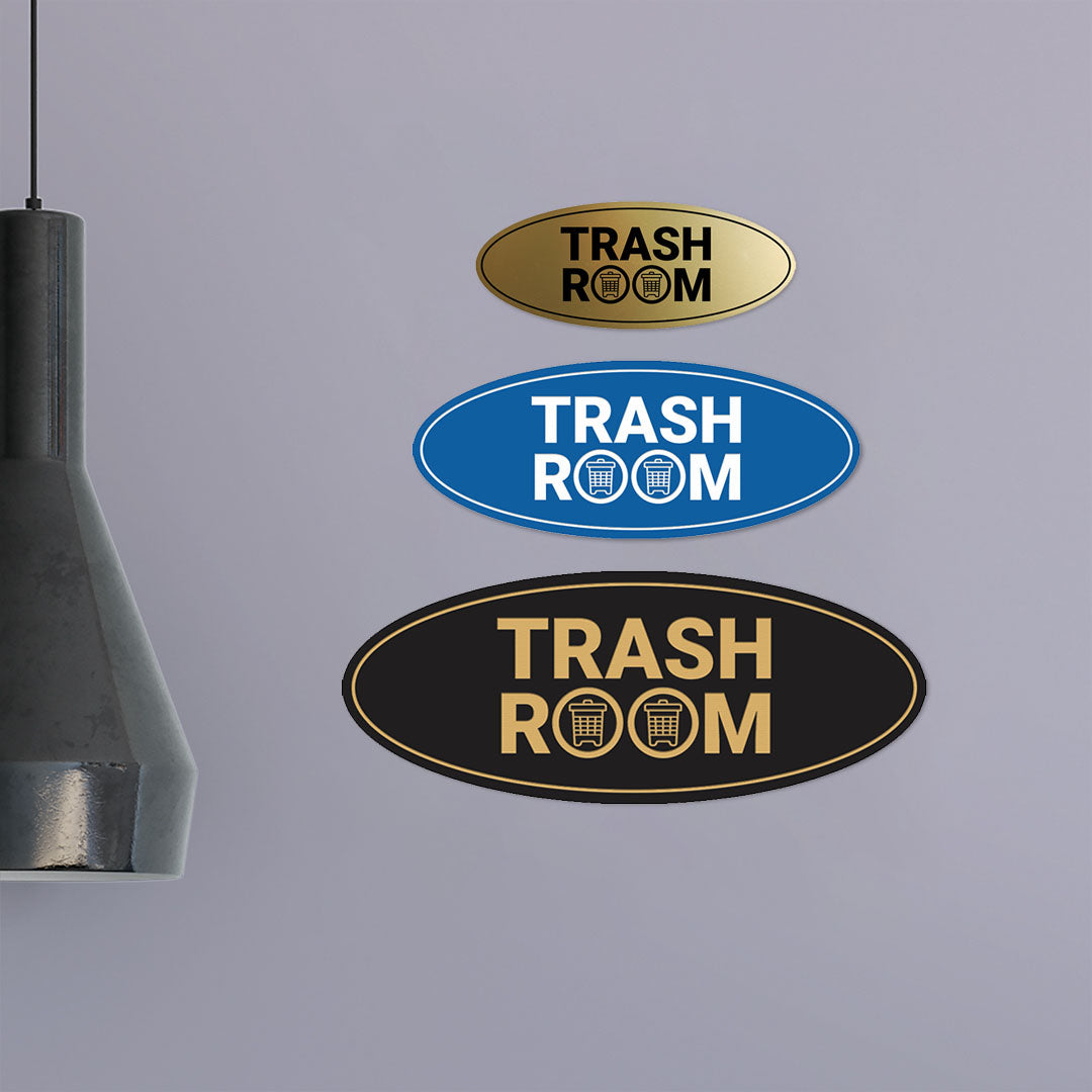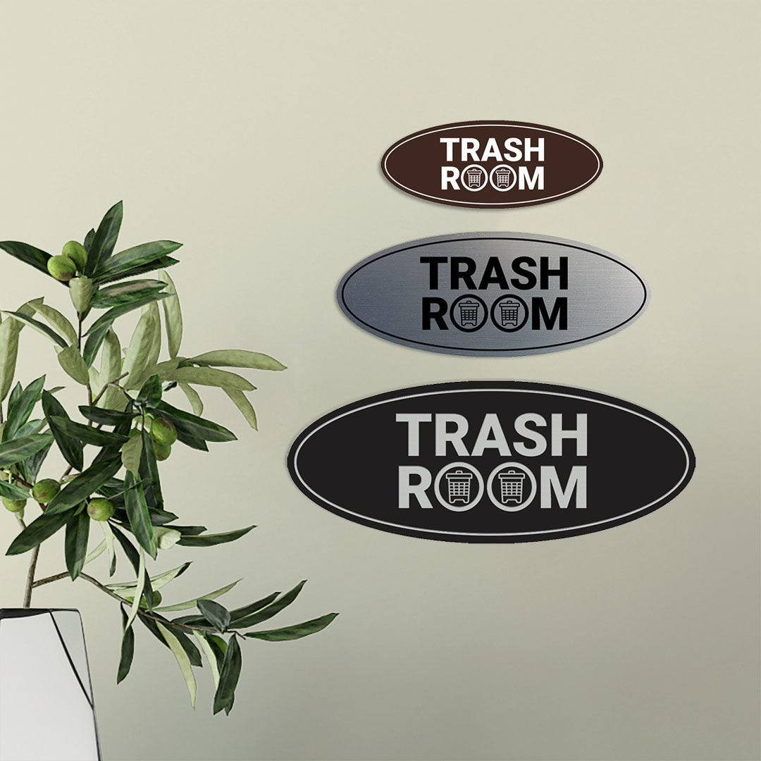Signs ByLITA Oval Trash Room Sign - Laser-Engraved Lettering