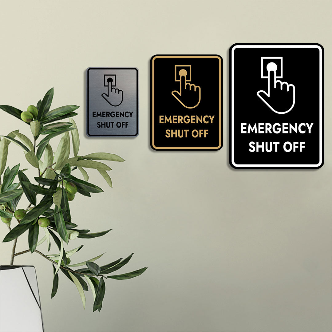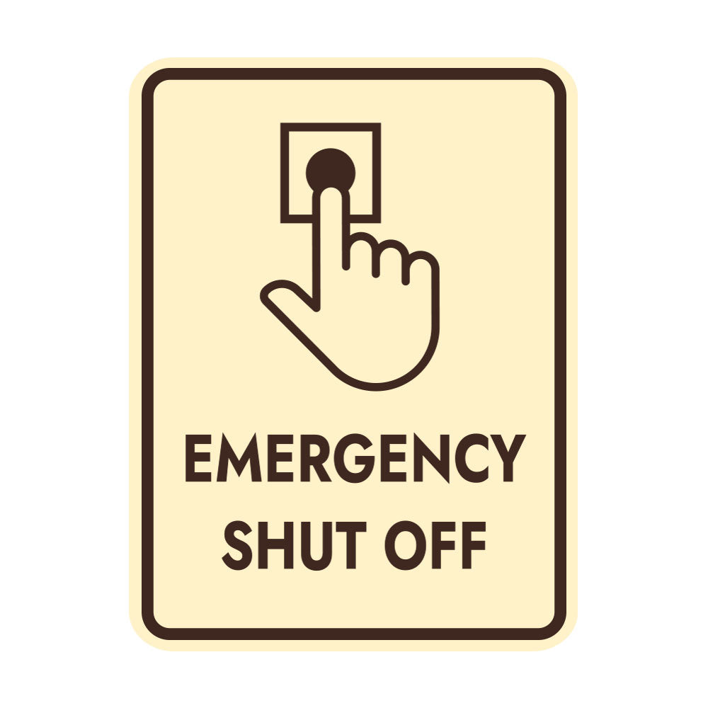 Our Signs ByLITA Portrait Round Emergency Shut Off Door or Wall Sign Easy Installation ' Health And Safety ' Building And Danger Sign can be attached to the door, wall or window of your home or business. The sign text and design work is laser engraved into sturdy plastic. Each sign comes with an adhesive foam backing, allowing them to be attached to any flat surface. Comes in multiple colors. Our fire, housekeeping, gun safety signs are great for your office or business.