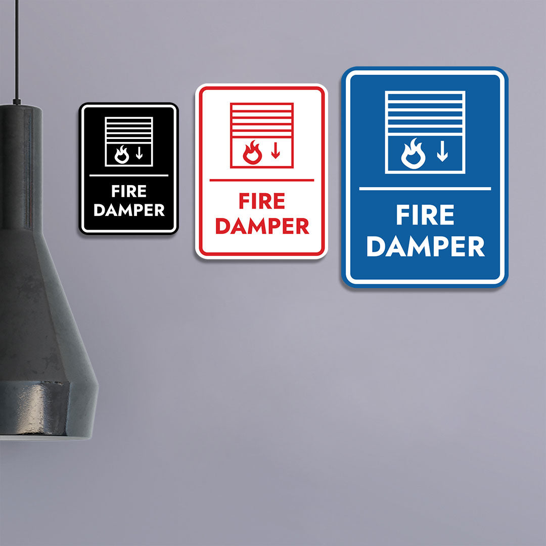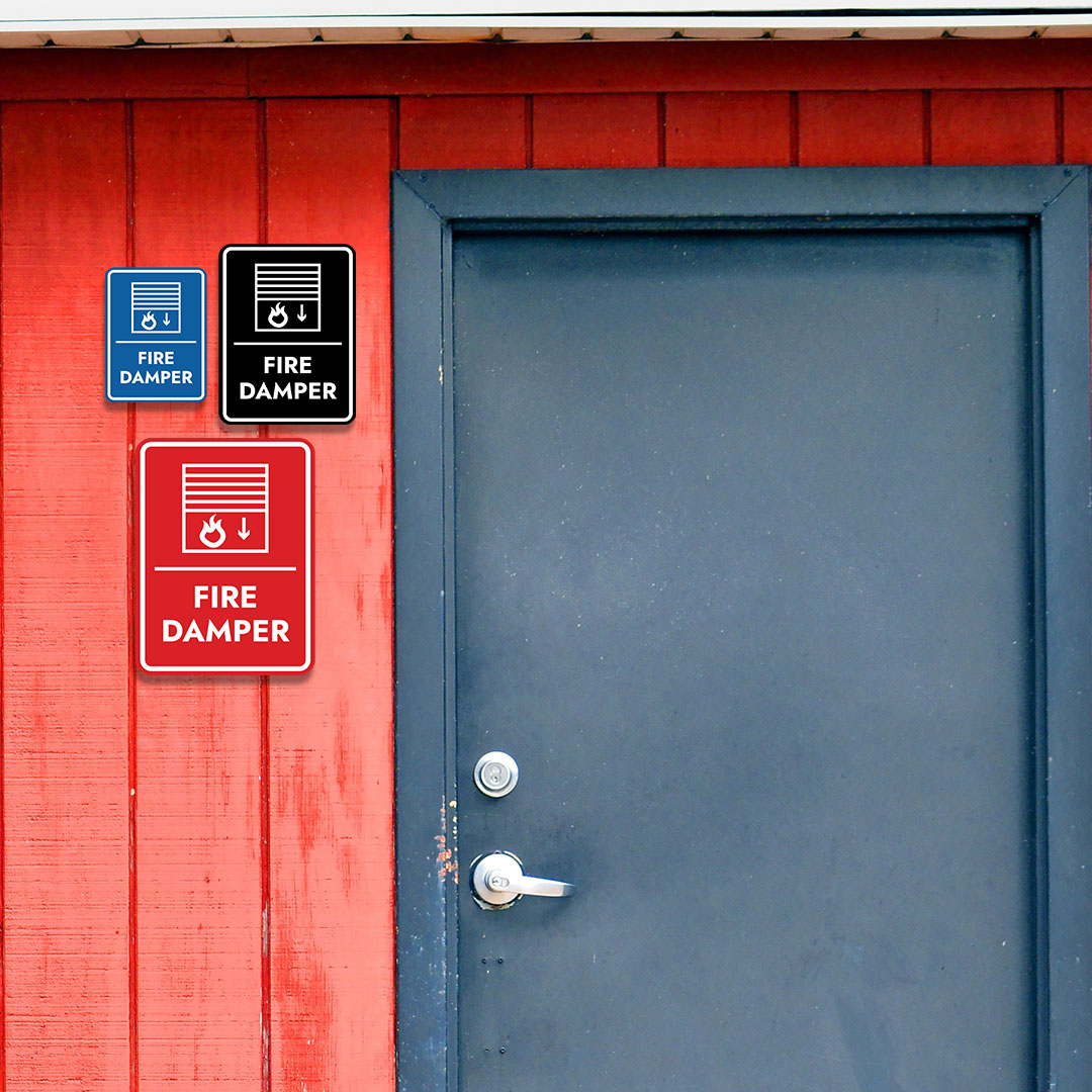 Our Signs ByLITA Portrait Round Fire Damper Door or Wall Sign Easy Installation ' Health And Safety ' Building And Danger Sign can be attached to the door, wall or window of your home or business. The sign text and design work is laser engraved into sturdy plastic. Each sign comes with an adhesive foam backing, allowing them to be attached to any flat surface. Comes in multiple colors. Our fire, housekeeping, gun safety signs are great for your office or business.