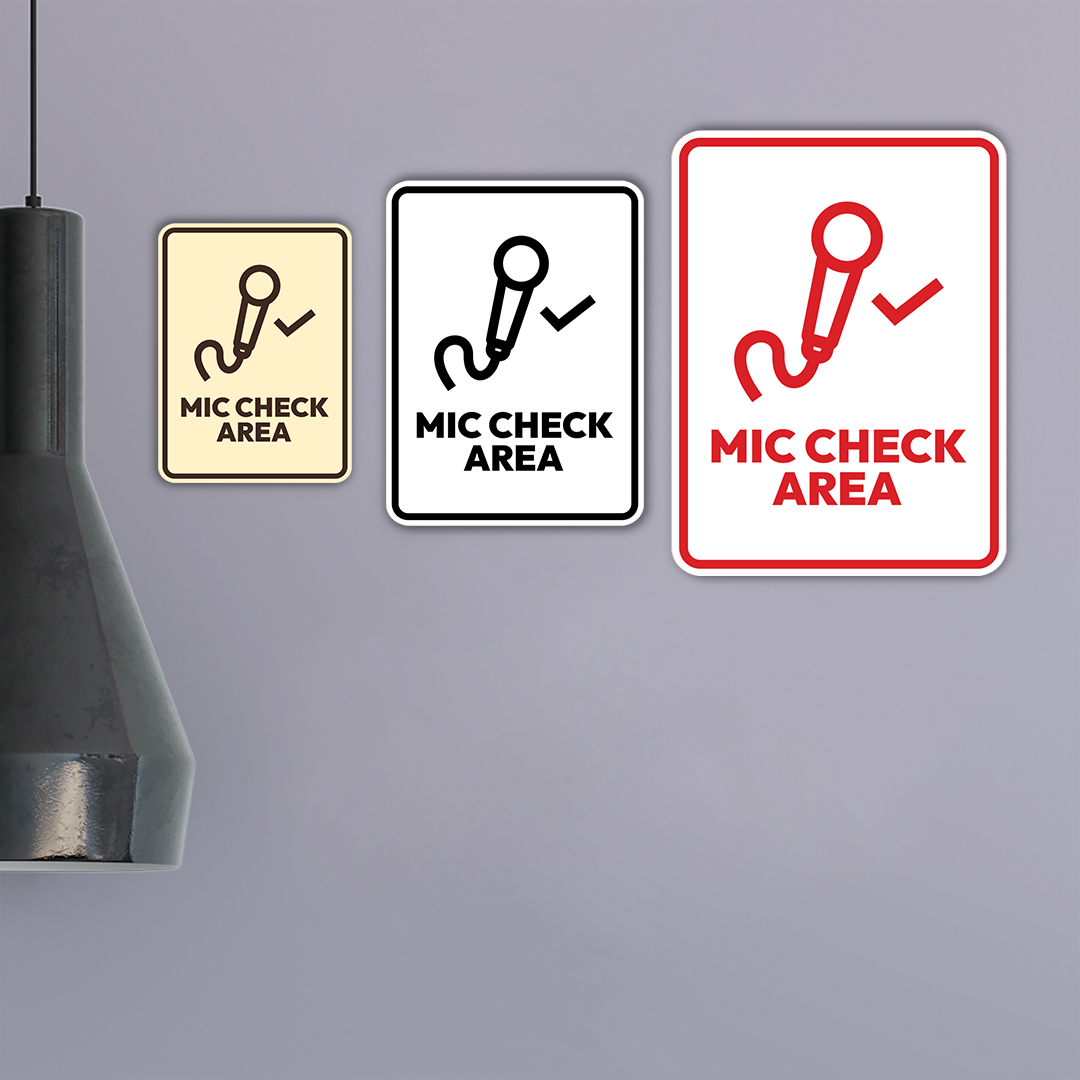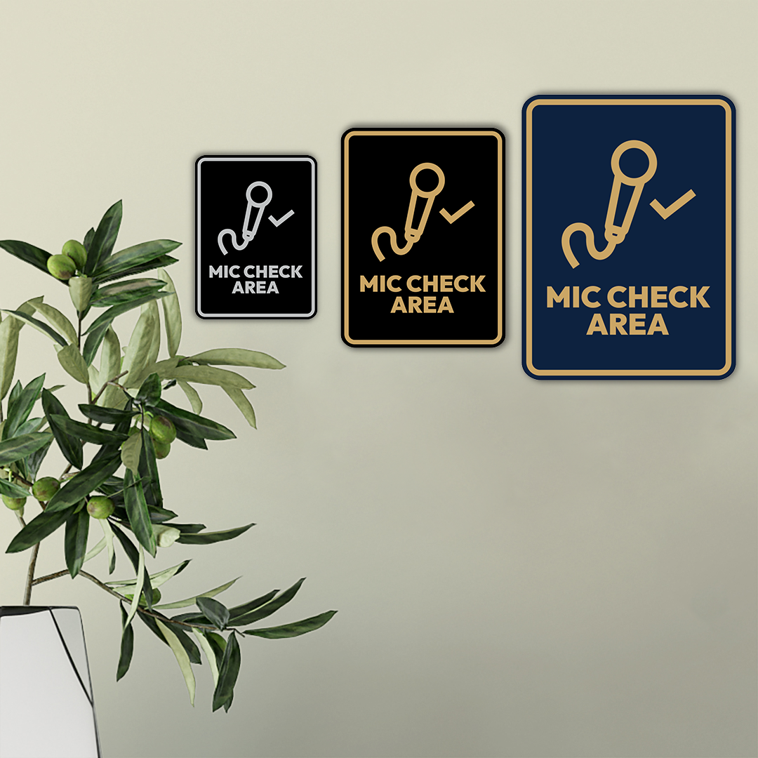 Signs ByLITA Portrait Round Mic Check Area Door or Wall Sign Easy Installation