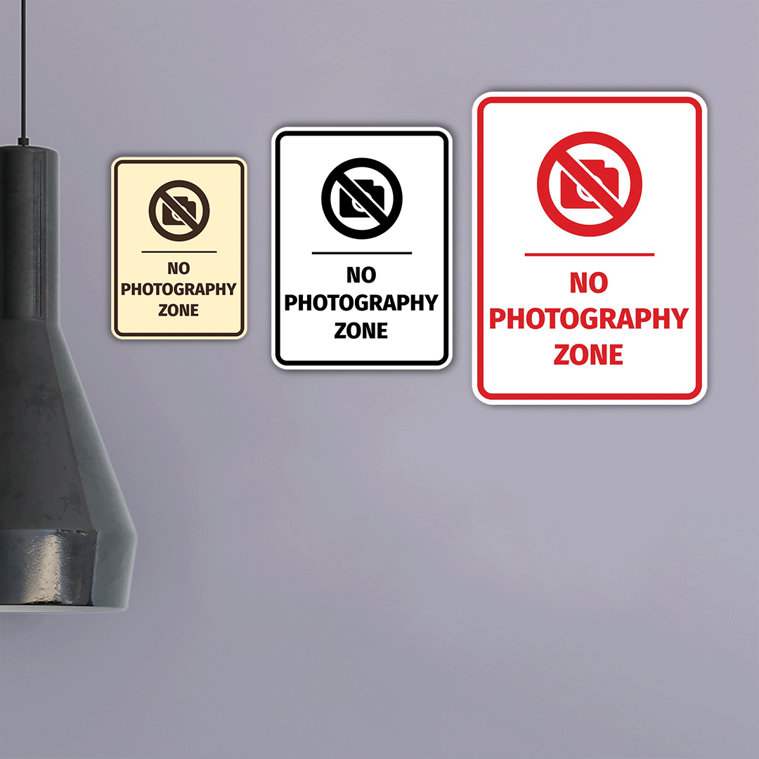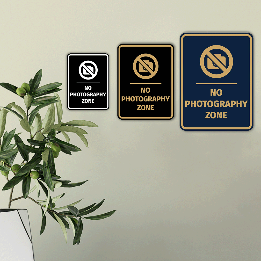 Signs ByLITA Portrait Round No Photography Zone Door or Wall Sign Easy Installation