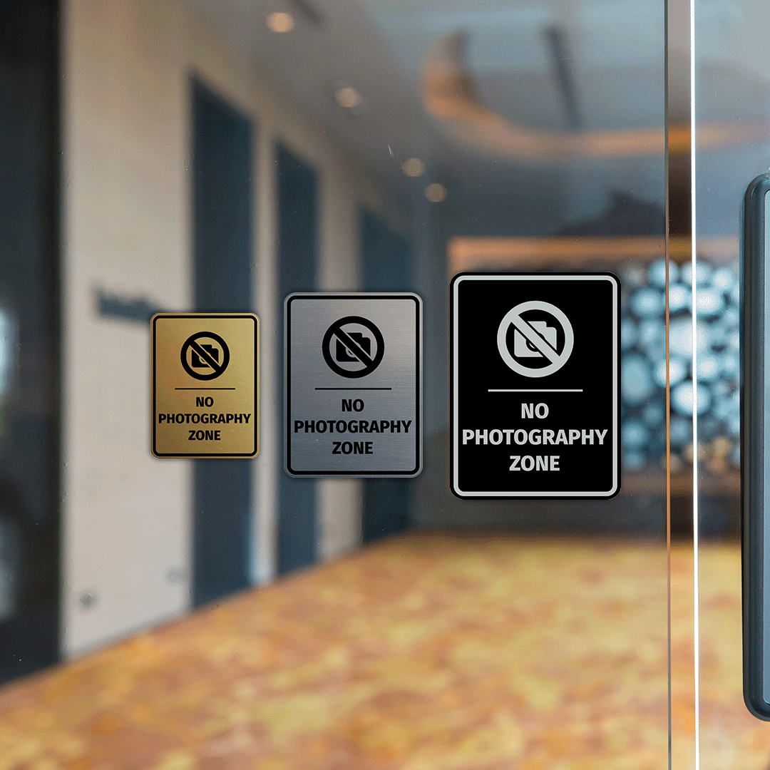 Our Signs ByLITA Portrait Round No Photography Zone Door or Wall Sign Easy Installation ' Directing Artists & Co-Workers ' Music ' Concert ' Festivals Sign can be attached to the door, wall or window of your home or business. The sign text and design work is laser engraved into sturdy plastic. Each sign comes with an adhesive foam backing, allowing them to be attached to any flat surface. Comes in multiple colors. Our artists/backstage signs are great for your office or business.