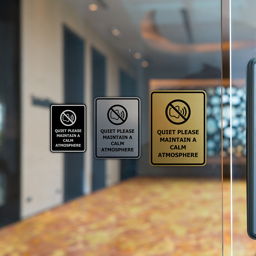 Signs ByLITA Portrait Round Quiet Please Maintain a Calm Atmosphere Door or Wall Sign Easy Installation