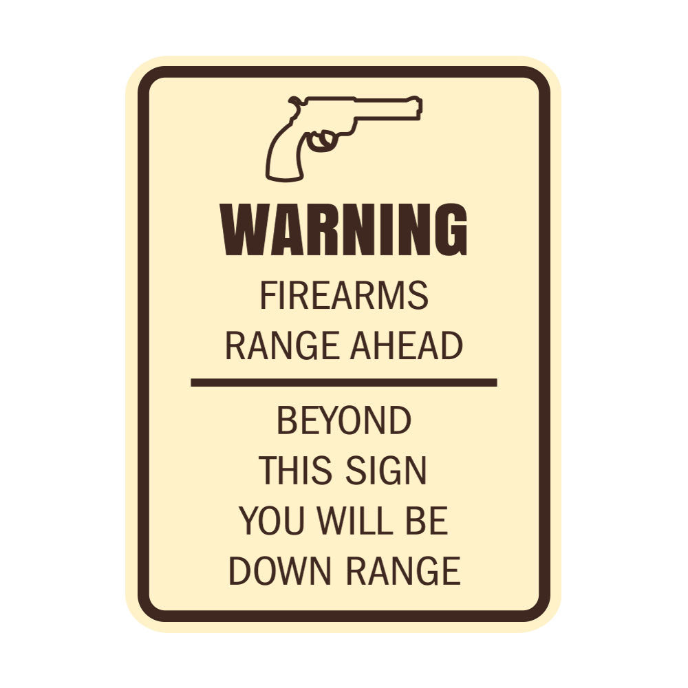 Signs ByLITA Portrait Round Warning Firearms Range Ahead Beyond This Sign You Will Be Down Range Door or Wall Sign Easy Installation
