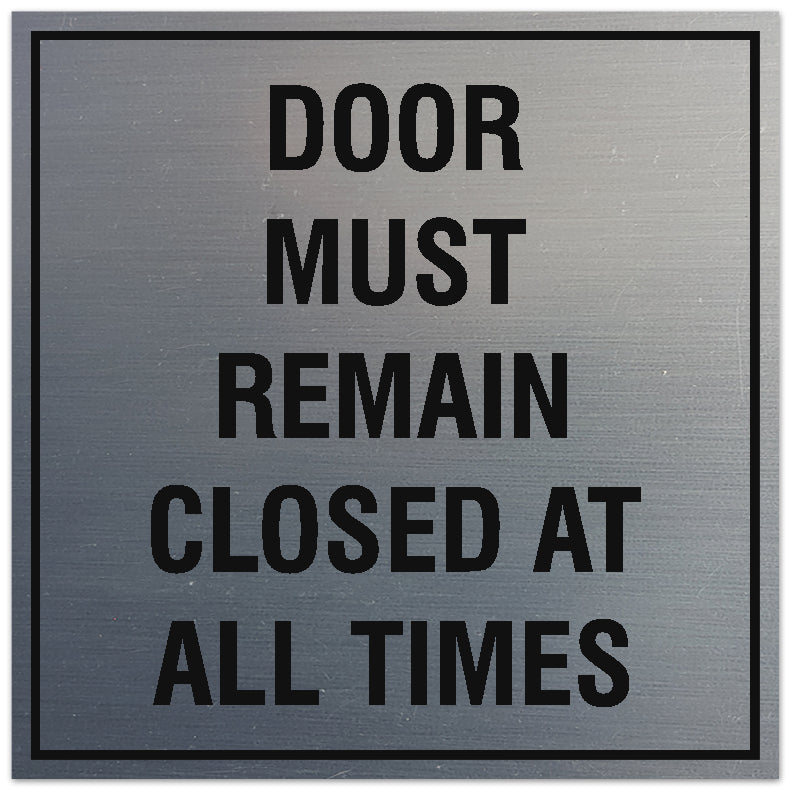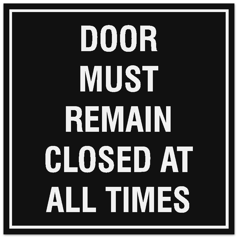 Elevate your Door Must Remain Closed at all Times charm and functionality with the Square Door Must Remain Closed at all Times Sign. Laser-engraved for impeccable clarity this sign's quality guarantees a lasting presence. Its resilience against wear and tear ensures it remains polished and impactful, maintaining it's appeal over...