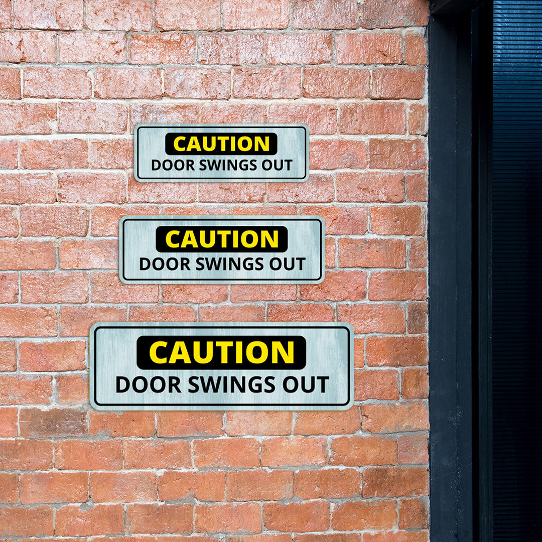 Standard Plus Caution Door Swings Out Wall or Door Sign