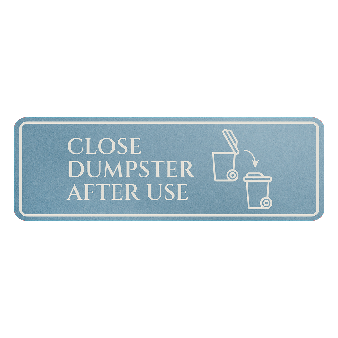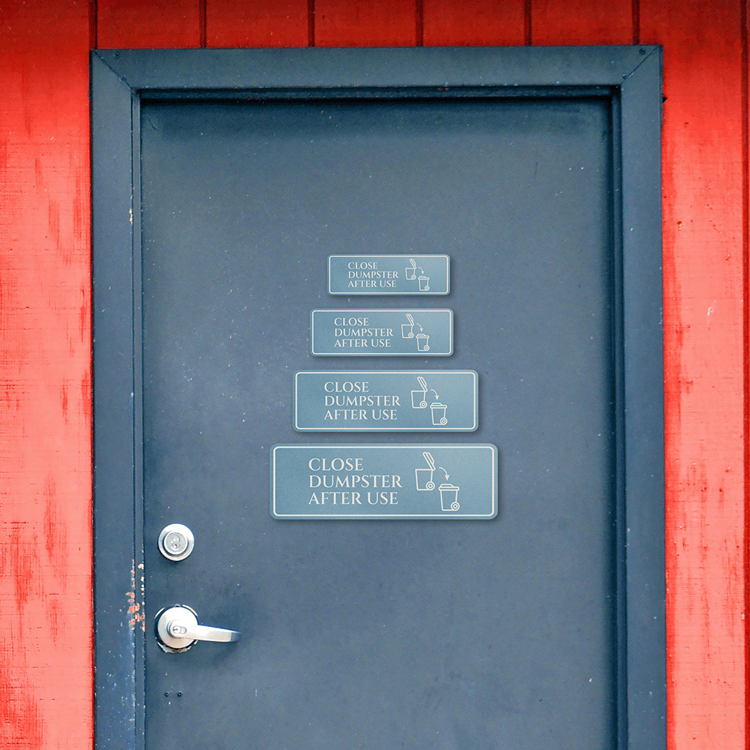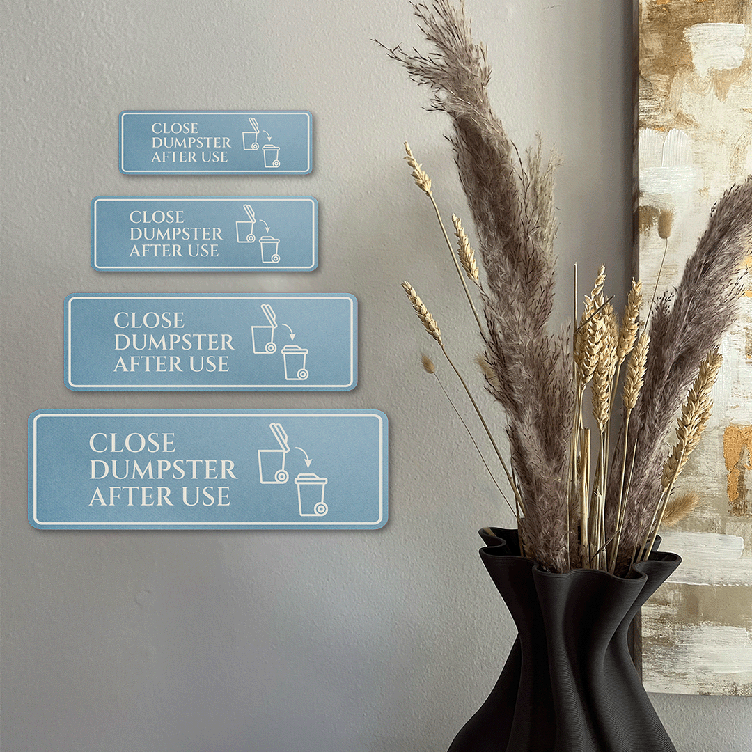 Elevate your business or home environment with Signs ByLITA's premium signs. Our Standard Plus Close Dumpster After Use Wall or Door Sign is designed to enhance your workspace with style, while sending a clear message. These signs feature vivid sublimation printing that ensures clear and lasting colors, making a powerful visual impact. Installation is a breeze with double-sided adhesive foam tape, providing a secure hold without surface damage. Crafted from durable reinforced plastic, our Standard Plus Close Dumpster After Use Wall or Door Sign is built to withstand daily wear and environmental conditions, eliminating the need for frequent replacements. These versatile signs find applications in various settings, from office doors and meeting rooms to displaying essential information or adding a touch of sophistication to your home decor. Signs ByLITA are the ideal choice for corporate offices, medical facilities, schools, and more. Our Close Dumpster After Use Sign offers a practical and stylish solution to elevate your workspace. Invest in these signs today to make a lasting impression, enhance professionalism, safety and security and transform your workspace into a welcoming and professional environment.