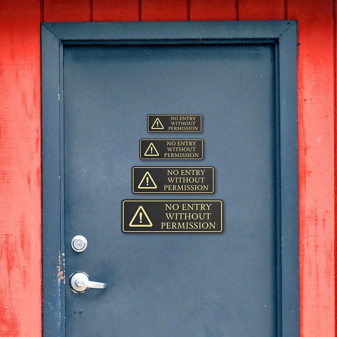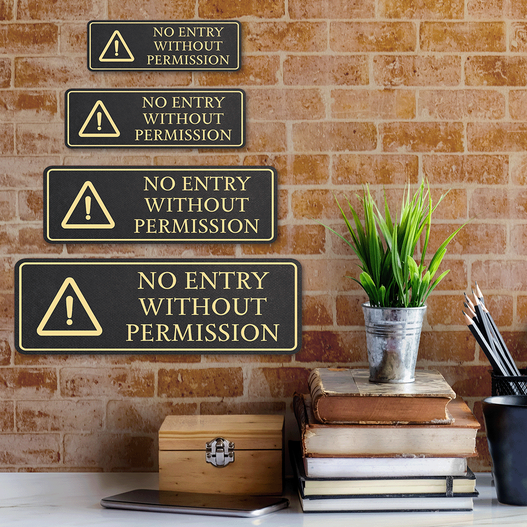 Elevate your business or home environment with Signs ByLITA's premium signs. Our Standard Plus No Entry Without Permission Wall or Door Sign is designed to enhance your workspace with style, while sending a clear message. These signs feature vivid sublimation printing that ensures clear and lasting colors, making a powerful visual impact. Installation is a breeze with double-sided adhesive foam tape, providing a secure hold without surface damage. Crafted from durable reinforced plastic, our Standard Plus No Entry Without Permission Wall or Door Sign is built to withstand daily wear and environmental conditions, eliminating the need for frequent replacements. These versatile signs find applications in various settings, from office doors and meeting rooms to displaying essential information or adding a touch of sophistication to your home decor. Signs ByLITA are the ideal choice for corporate offices, medical facilities, schools, and more. Our No Entry Without Permission Sign offers a practical and stylish solution to elevate your workspace. Invest in these signs today to make a lasting impression, enhance professionalism, safety and security and transform your workspace into a welcoming and professional environment.